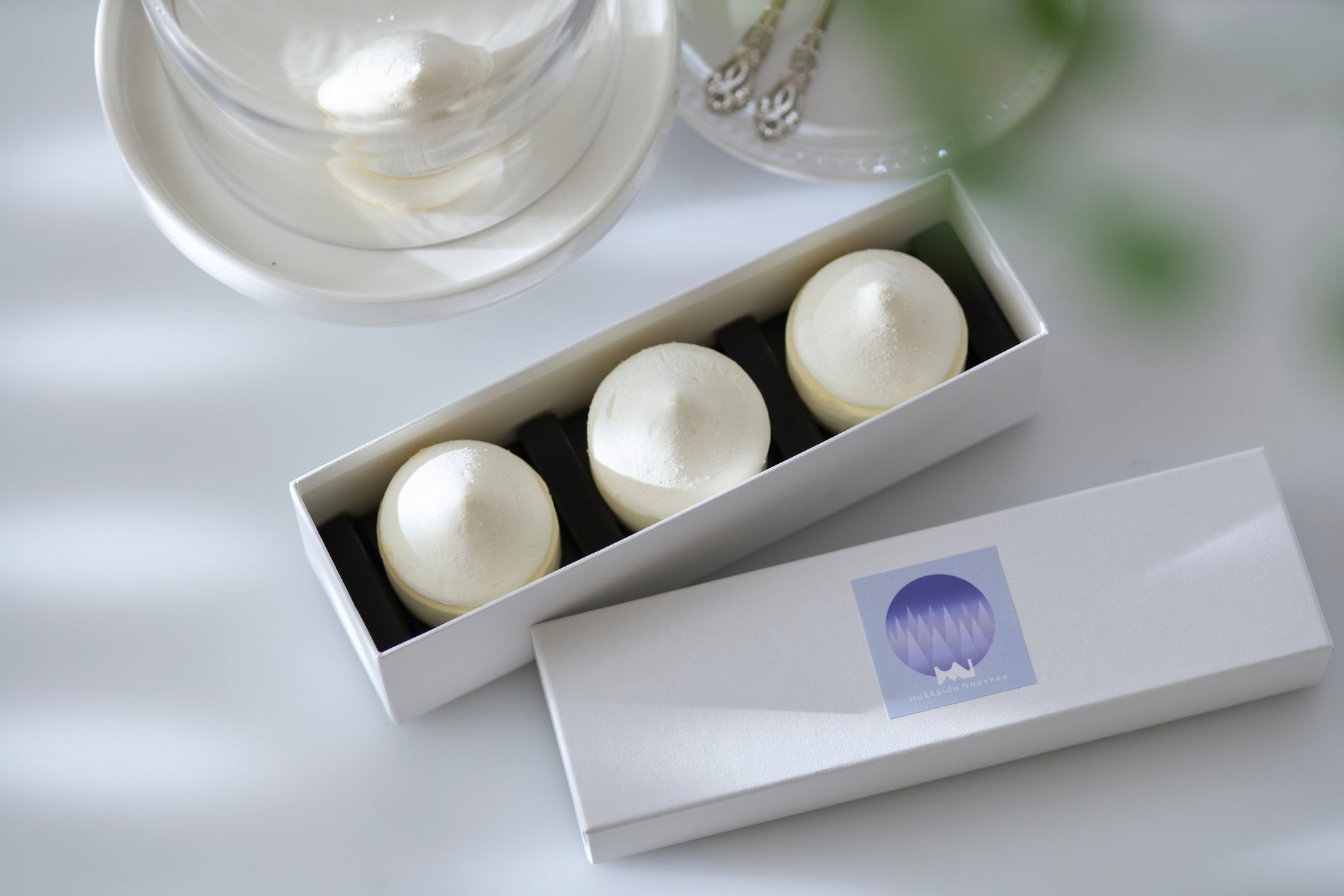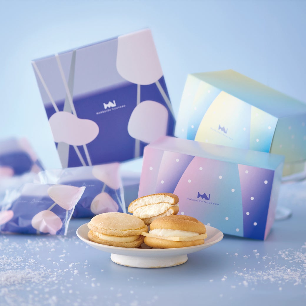 真っ白な雪景色に包まれる北海道。「北海道ヌーボー・冬」はその厳しくも美しい冬の情景をスイーツで表現しました。北海道産ミルクを使用して、職人技が光る繊細なブッセとスフレを作りました。雪のようにやさしい口どけを、美しい冬景色をイメージして描いた特別なパッケージとともにお楽しみいただけます。
