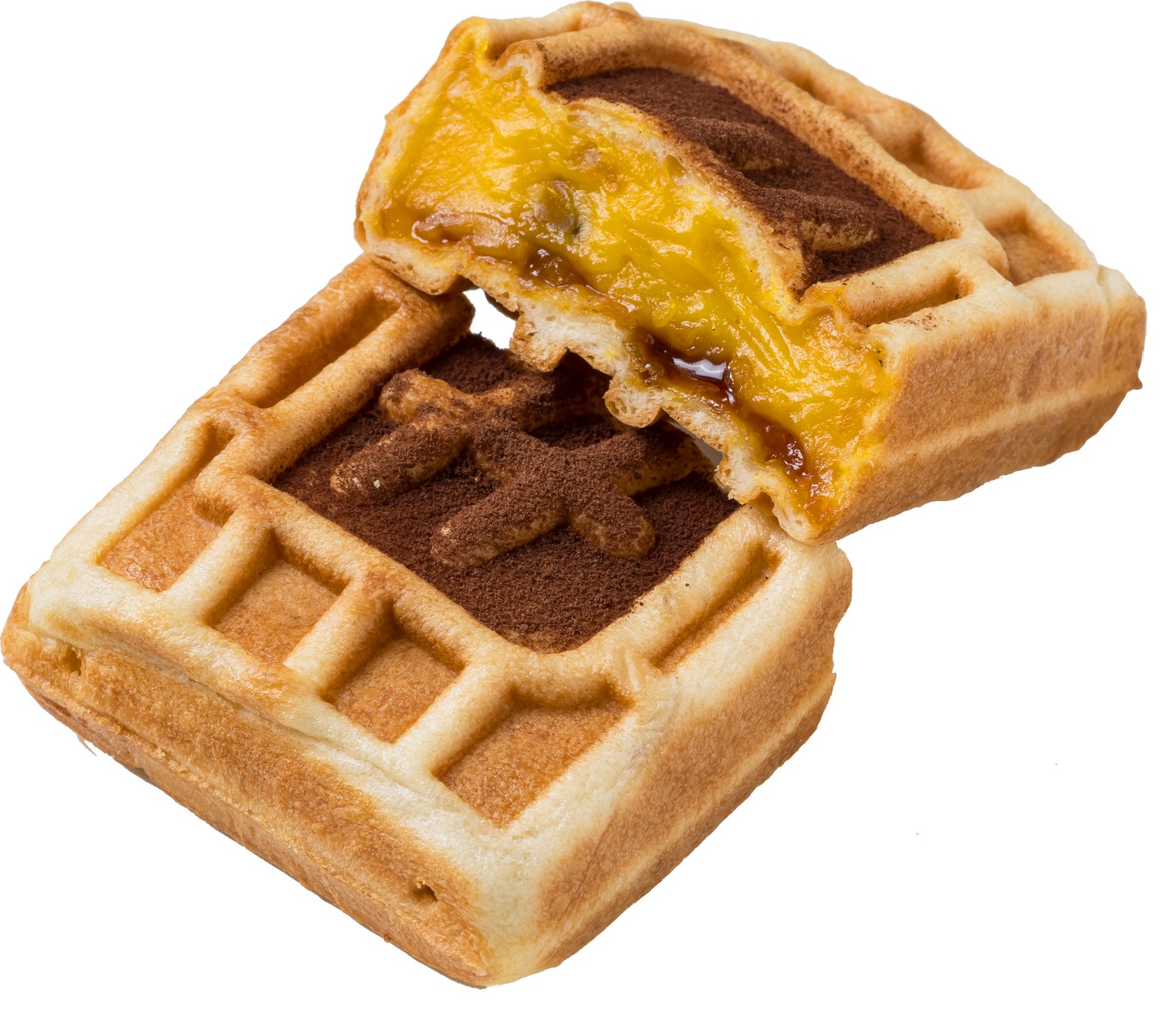 秋の定番、かぼちゃプリンをワッフルに。北海道産えびすかぼちゃの濃厚クリームと、ほろ苦いカラメルソースが絶妙なバランス。仕上げにかけたココアパウダーで大人の味わいに。温めても冷やしても美味しくお召し上がりいただけます。