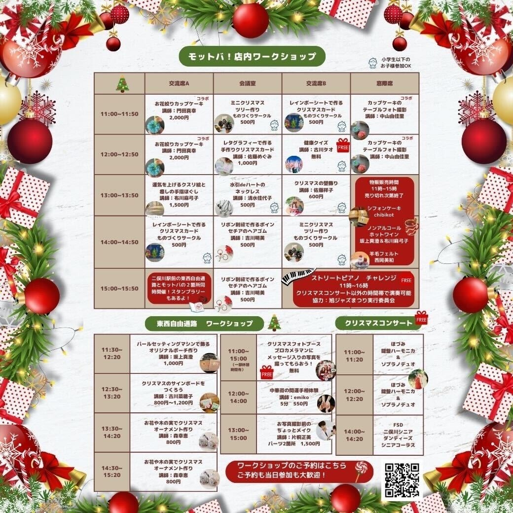 多世代が集う横浜・二俣川駅直結のコミュニティスペースモットバ!では、10代〜90代までの幅広い世代が利用しており、スマホ講座、ランチや英会話の会、ものづくりサークルなどの企画によって、世代間交流が活発に行われています。今回は、マチナカマとのコラボレーションによって、モットバ!が保有するシニアの知見を活かした特別企画などを開催します。クリスマスカードやミニツリーが製作できるワークショップや、ステージでのクリスマスコンサート、ノンアルコールのホットワインなど季節を感じられるイベント・食事が目白押しです。