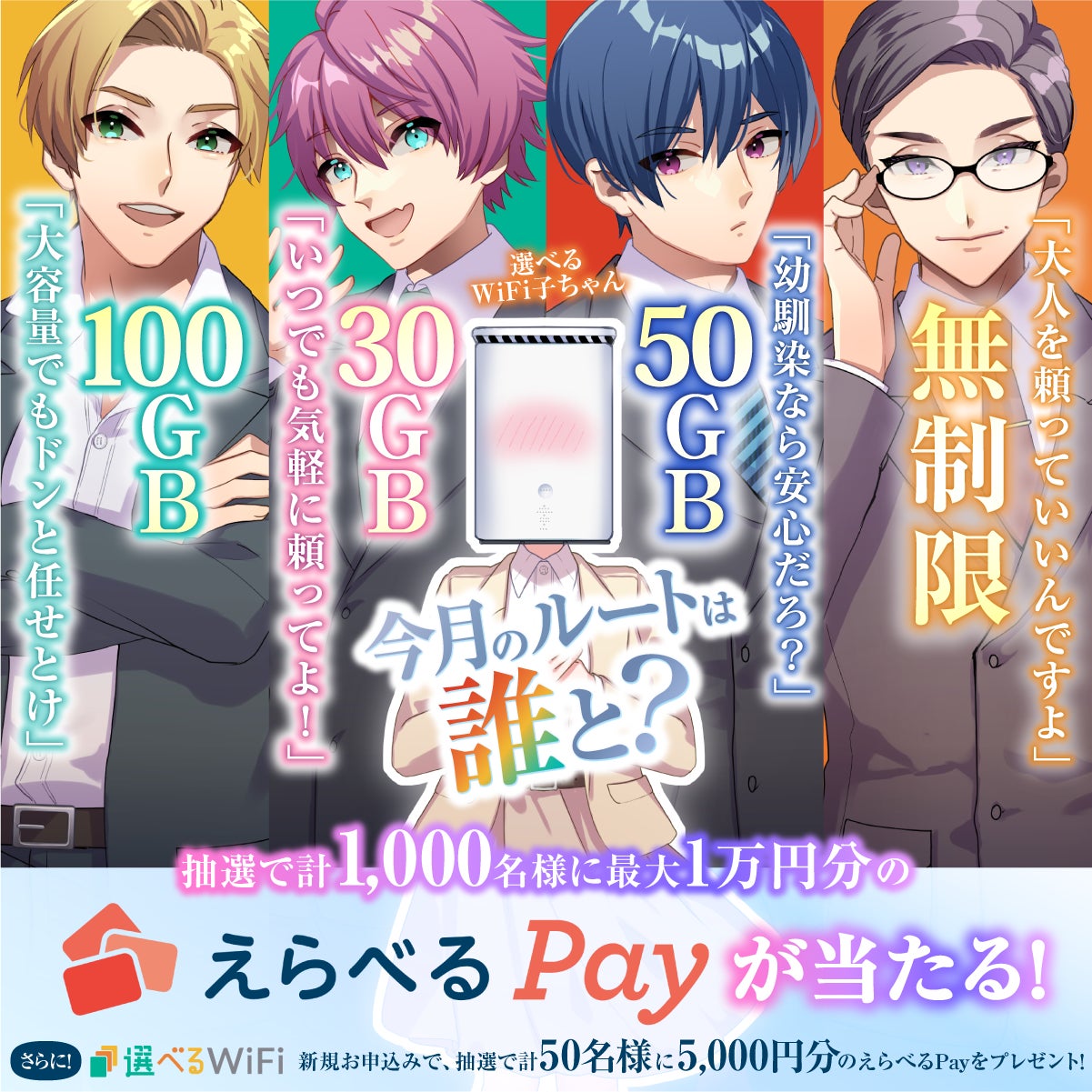 また、Wチャンスとして、「選べるWiFi」の新規お申込みの方から、抽選で50名様に5,000円分の「えらべるPay」をプレゼント!