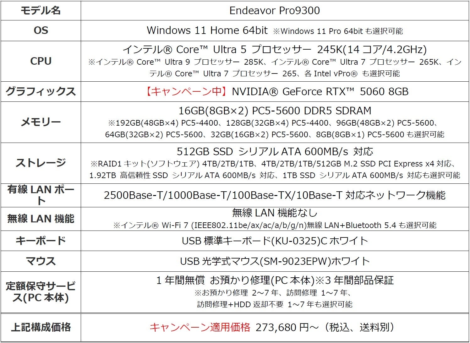 『Endeavor Pro9300』の詳細は、ホームページでご確認ください。