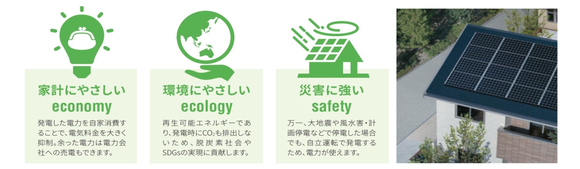 燃料費の高騰などを理由に光熱費の値上げが実施されるなか、電力などの「つかう」エネルギーは「つくる」時代に。「NYSTYLE N」では標準で3.735kWの太陽光発電システム(以下:PVシステム)を搭載※1。エネルギーを自給自足し、家計にも環境にもやさしく、万一の停電時にも電力が使えるレジリエンス性の高い住まいの実現のため、すべてのお客さまに太陽光発電システムを提案します。