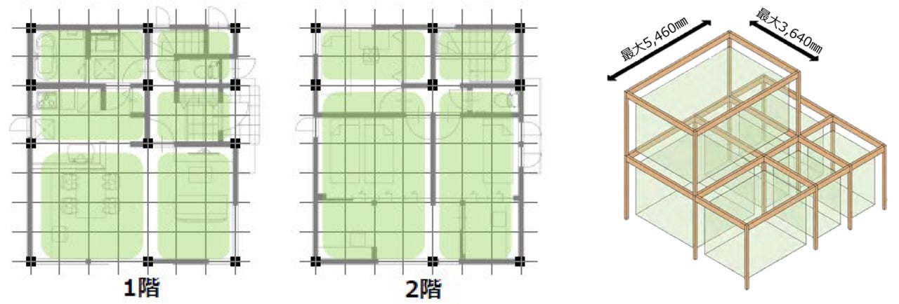 ○ 木材使用量を低減する新グリッド設計により、より少ない資材で良質な住まいを提供し、森林資源の保全に貢献