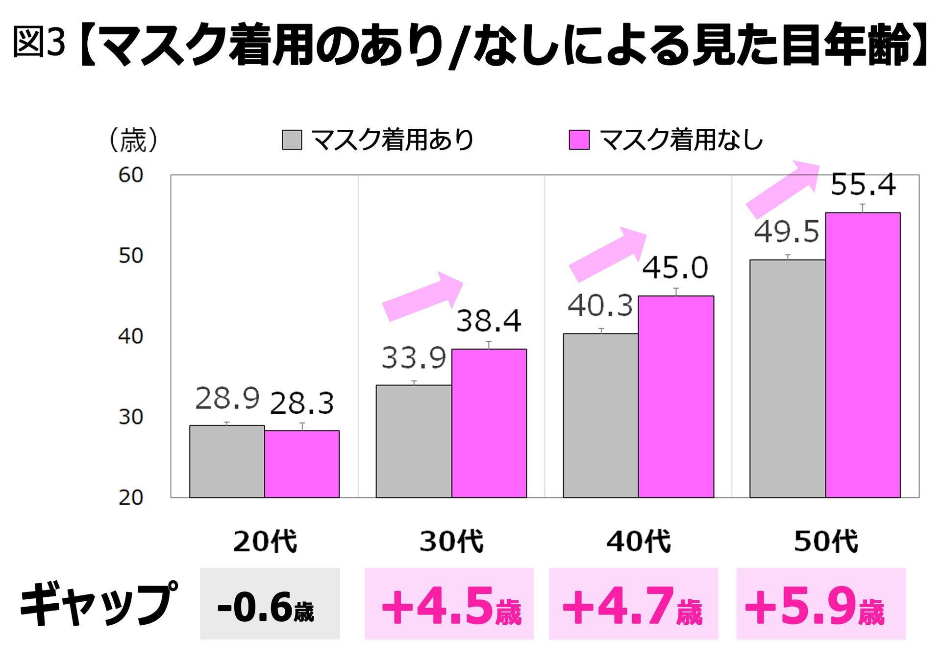 - マスクで“見た目年齢ギャップ”が発生 50代では+5.9歳