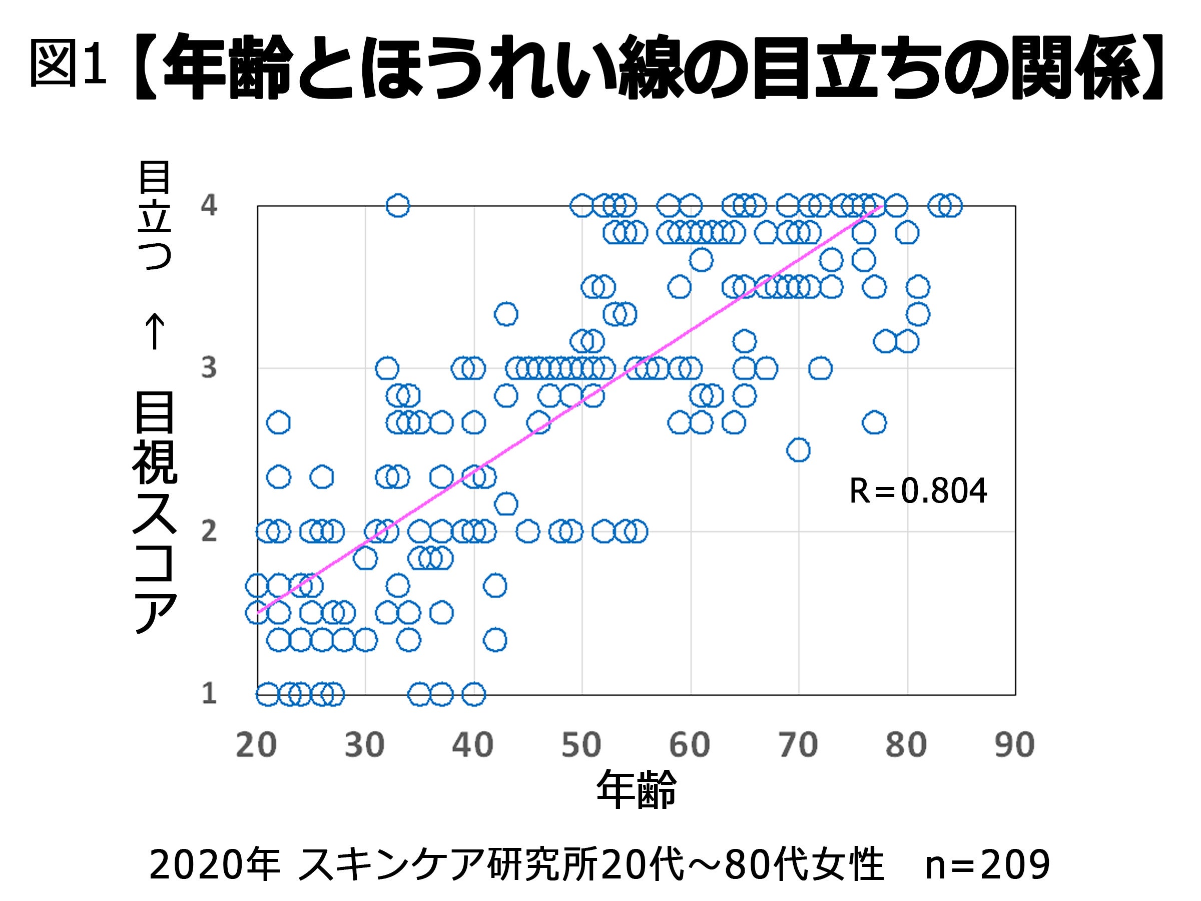 マスクありの画像は、顔の大部分が隠れており、主に目もとの様子で見た目年齢を判断することになります。一方、マスクなしの画像では、隠れていた部分があらわになり、顔全体に目が行きます。その中でも、顔の中心にあり加齢によって目立つようになるほうれい線が、“見た目年齢ギャップ”を生み出しているものと推察されました。