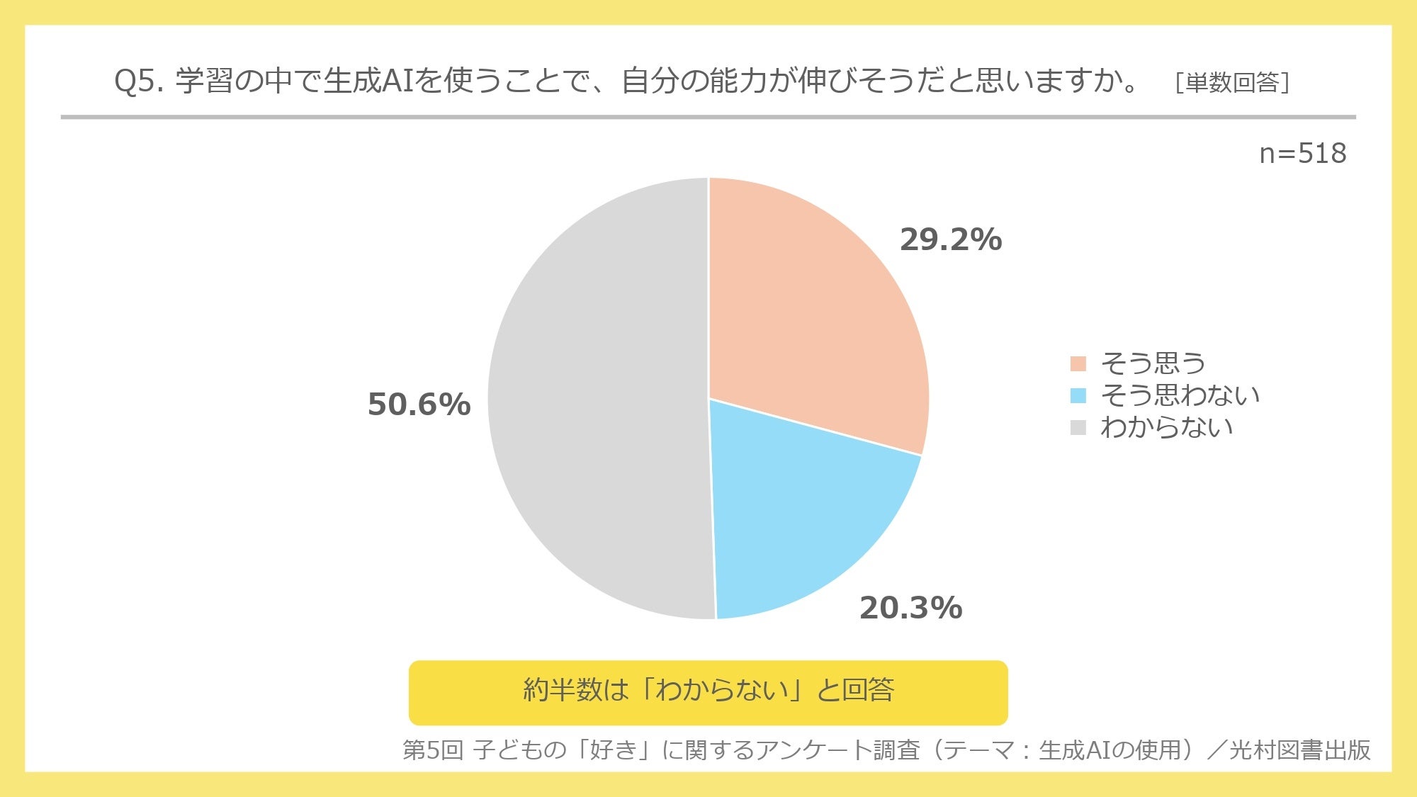 第5回 子どもの「好き」に関するアンケートで、生成AIの使用状況を調査/「生成AIがあれば勉強していく必要はなくなっていくと思うか」の問いに、約半数が「そうは思わない」と回答