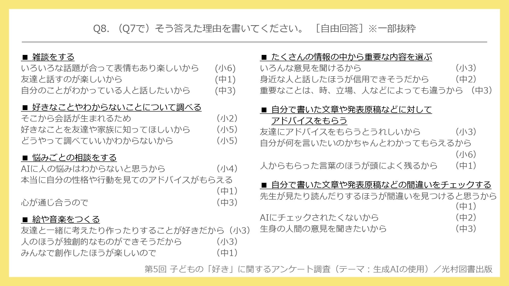 Q8. (Q7で)そう答えた理由を書いてください。(自由回答) ※一部抜粋
