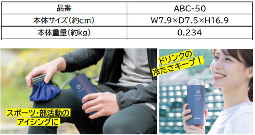 「ミニアイスパック ポケット(ABB-S07)」 は、携帯性と使いやすさを追求し、ポケットにも収まるコンパクトなサイズで、手軽に持ち運べる新しいスタイルの氷のうです。また、「アイスパック シリコーン氷のうタイプ(ABB-30L)」 は、アウトドアや長時間のおでかけに最適なビッグサイズ。魔法瓶構造のホルダーとシリコーン氷のうの組み合わせで、より長く冷たさをキープします。そして、「アイスパック 布氷のうタイプ(ABC-50)」 は、従来品より氷のうをサイズアップし、スポーツ時のアイシングや発熱時のケアにぴったりの布製タイプで、さらに便利に使いやすく進化しました。