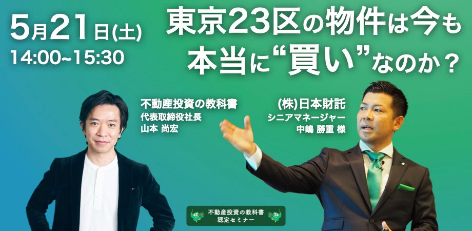株式会社WonderSpace(本社:東京都港区、代表取締役:山本 尚宏)と株式会社日本財託(本社:東京都新宿区、代表取締役:重吉 勉)は、2022年5月21日(土)に不動産投資共催セミナーを開催いたします。