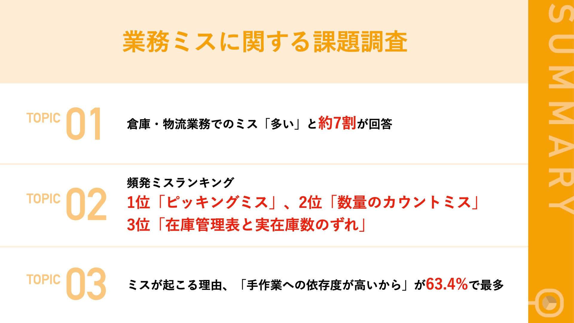 約7割が倉庫・物流業務を行う中で「ミスがよく発生する」と回答