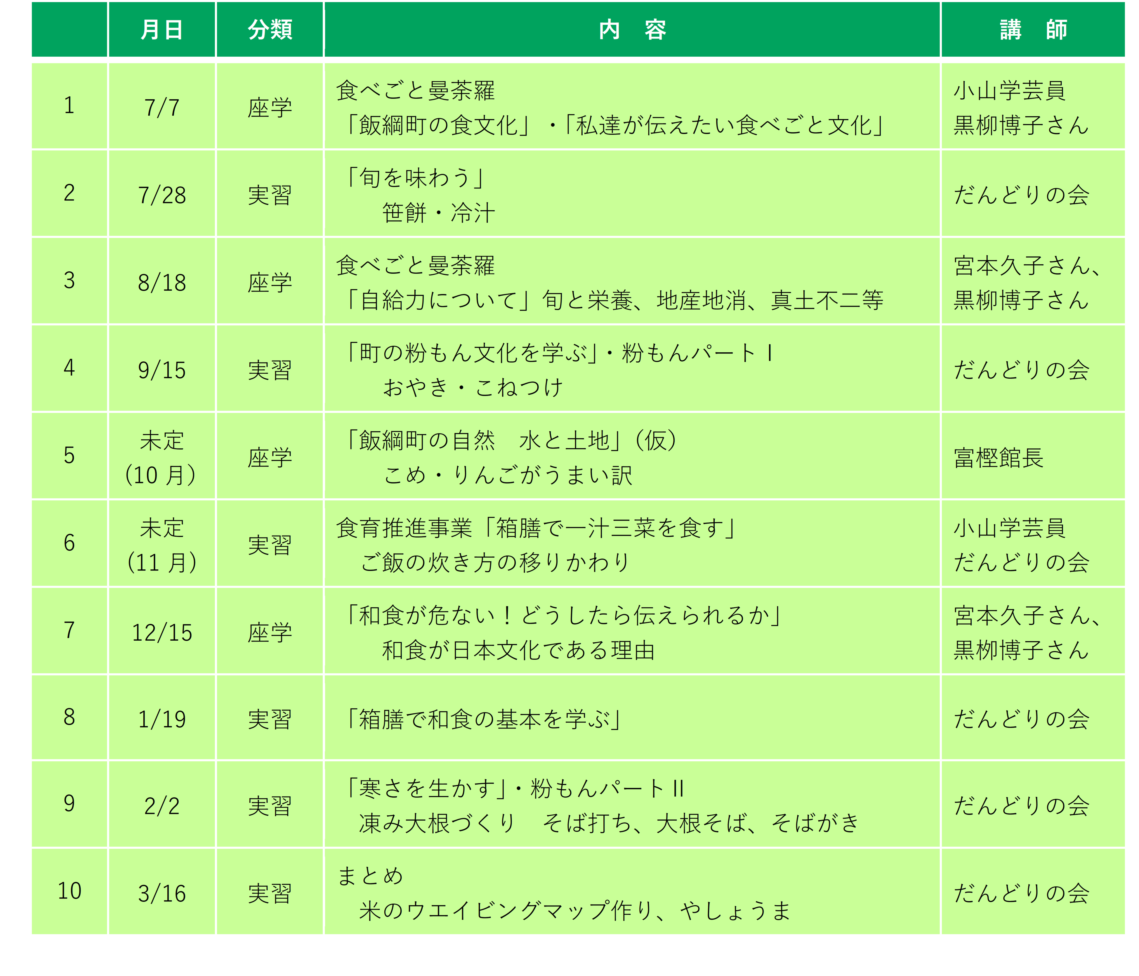 飯綱町の郷土食、農産物を中心とする食文化に興味をお持ちの方、学んでみたい方はぜひご参加ください。多くの皆様のご参加をお待ちしています。