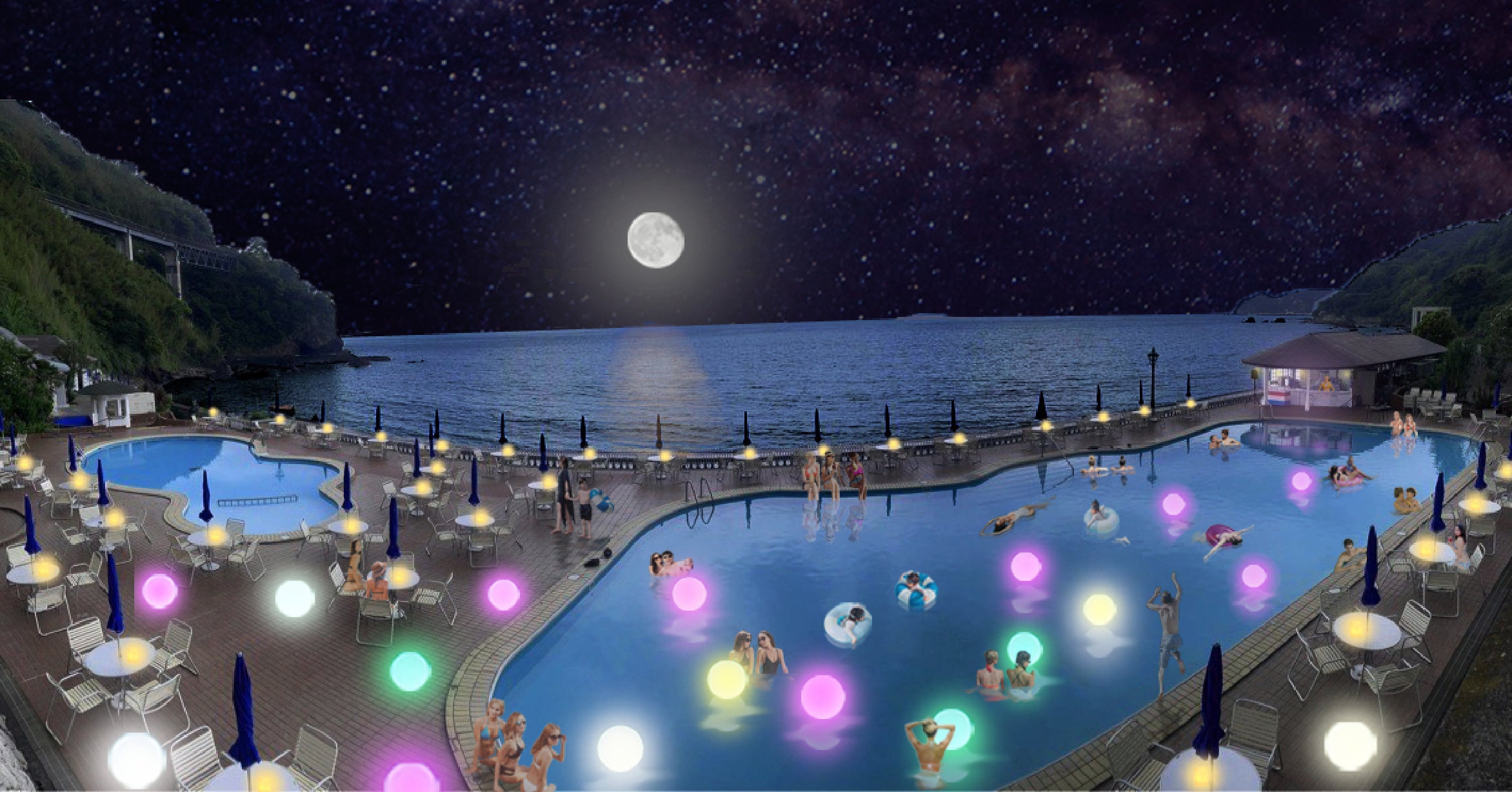 熱海市内唯一のナイトプール、幻想的な音と光に包まれる非日常体験を