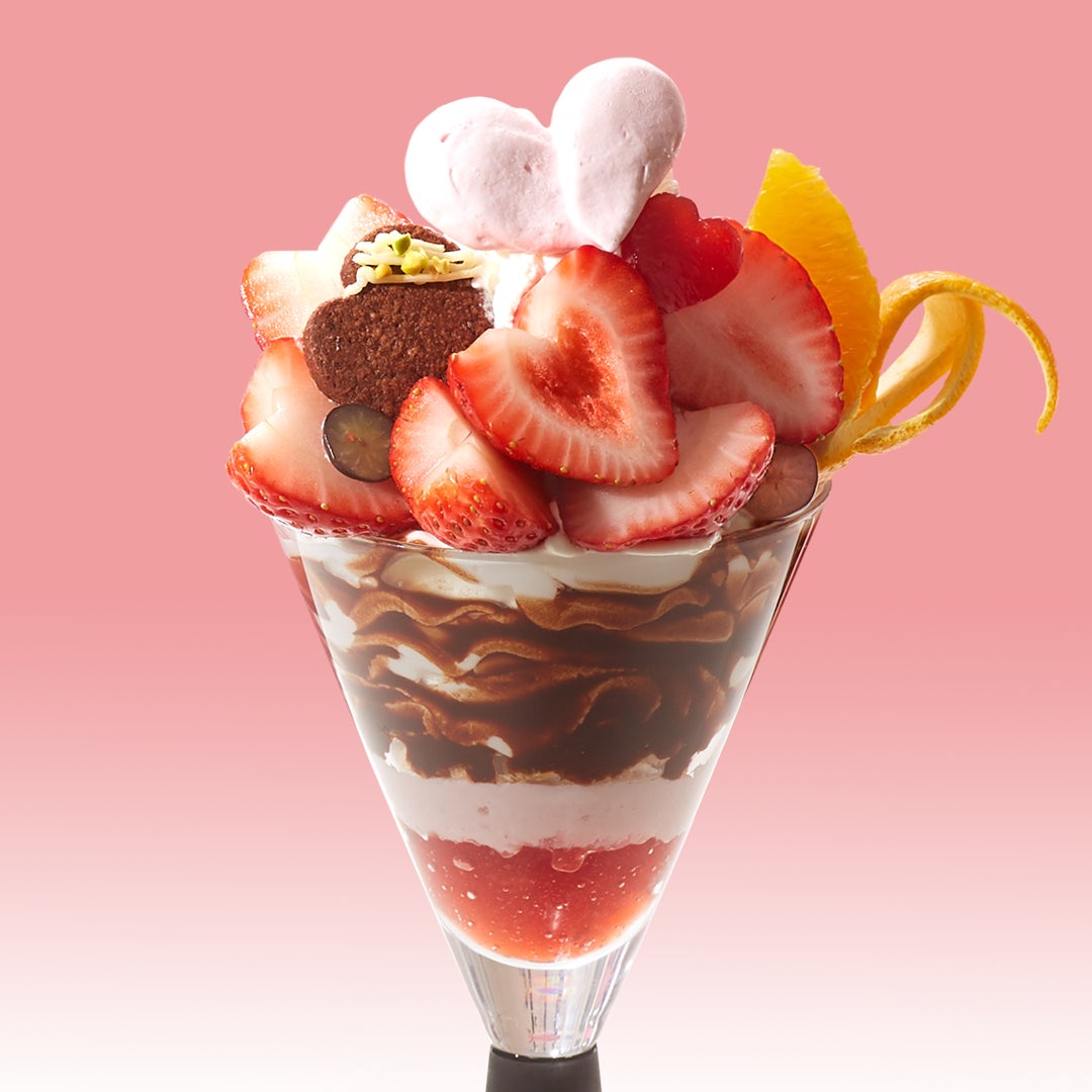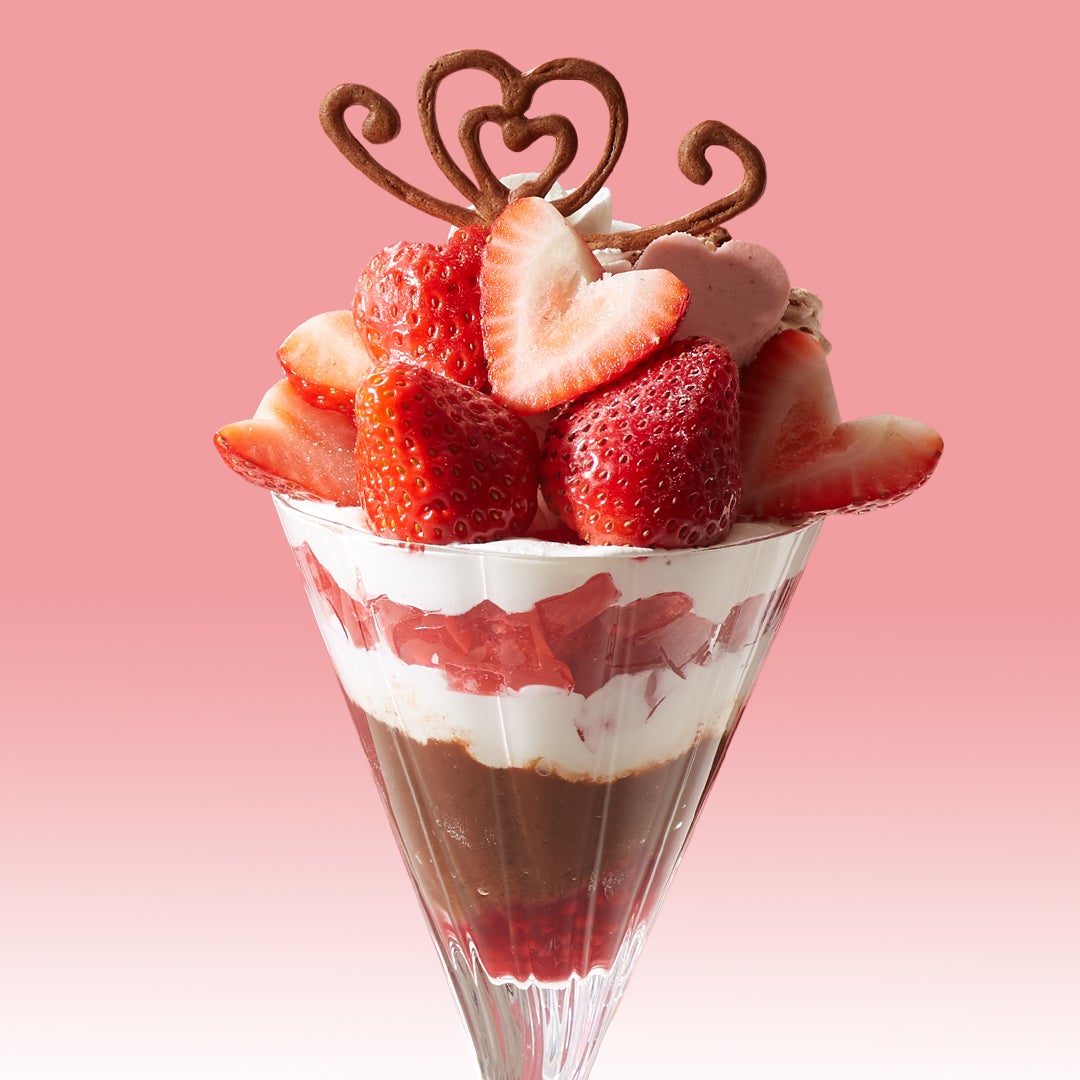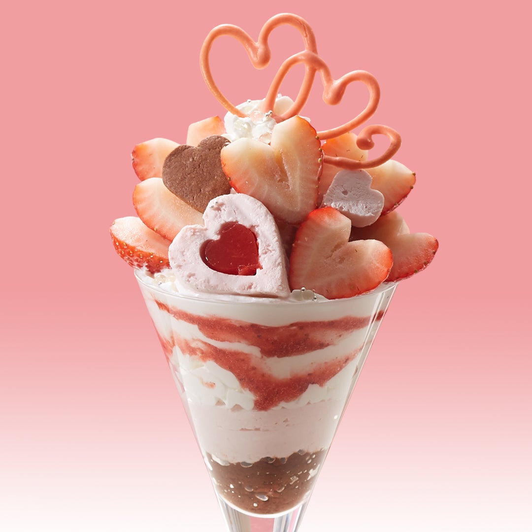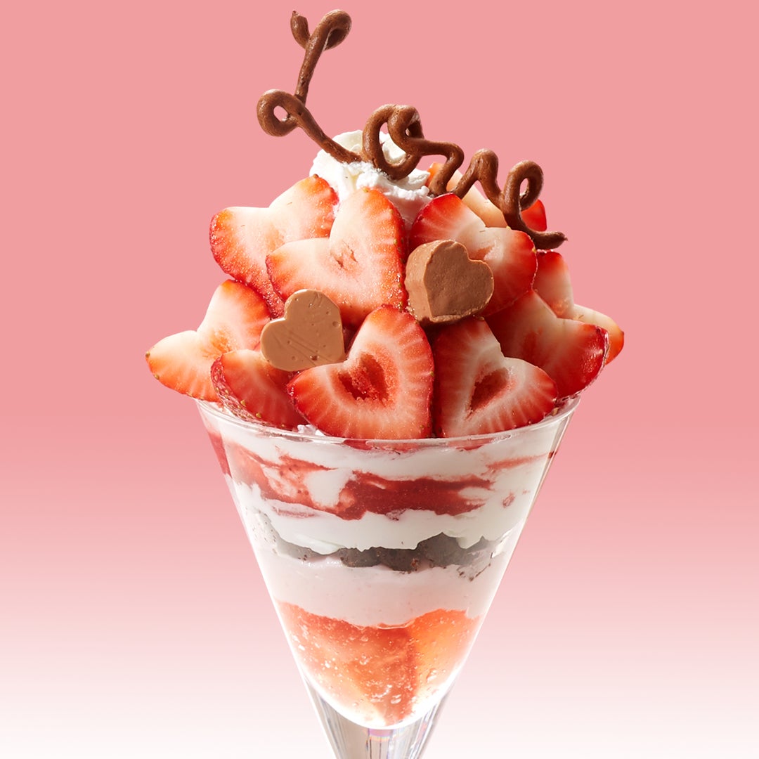 ハートをモチーフにした苺を飾り、今しか出会えないパフェをご用意しました。