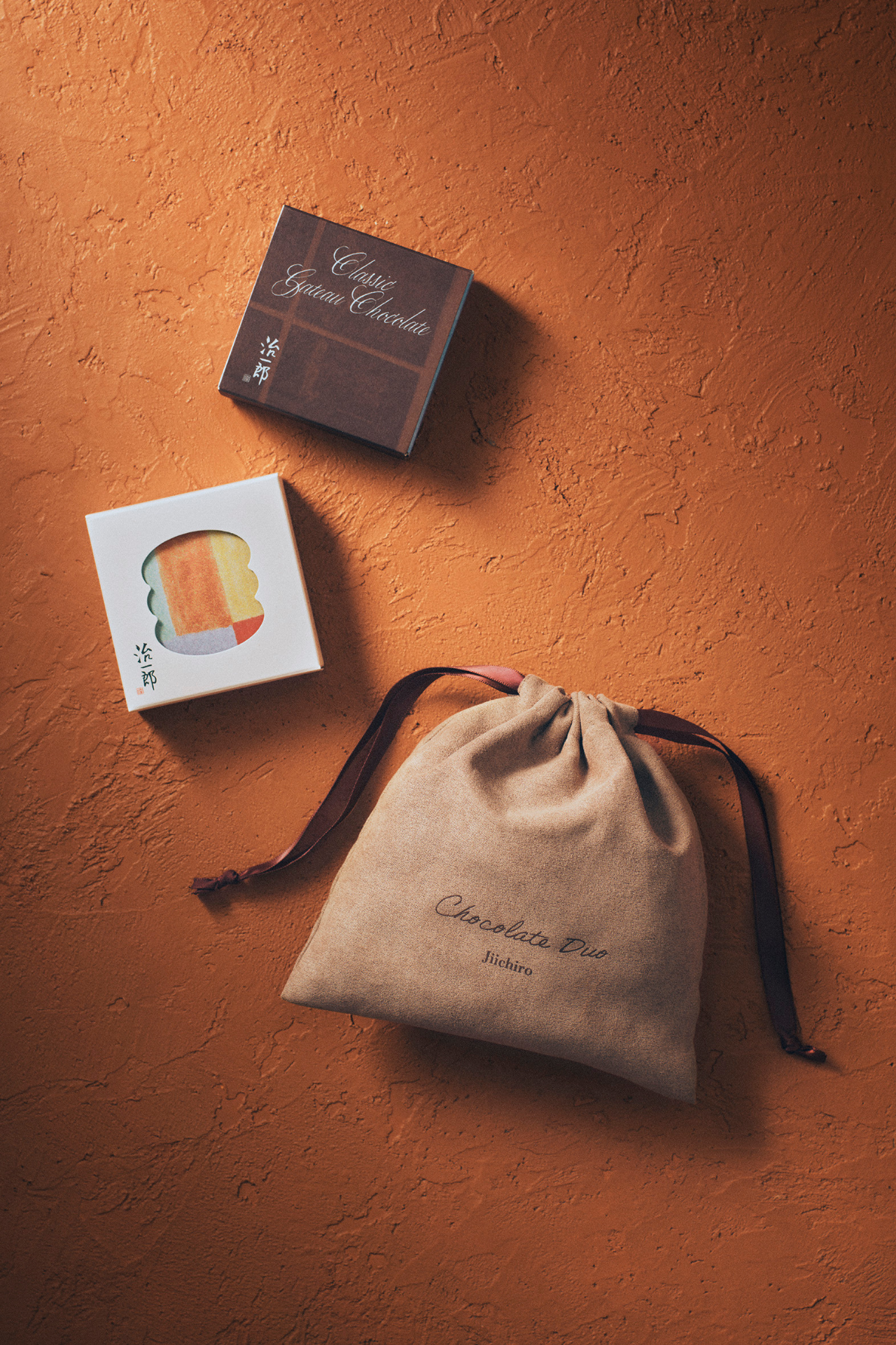 クラシック・ガトーショコラとキャラメルチョコサンドを、オリジナル巾着に入れた特別仕様。