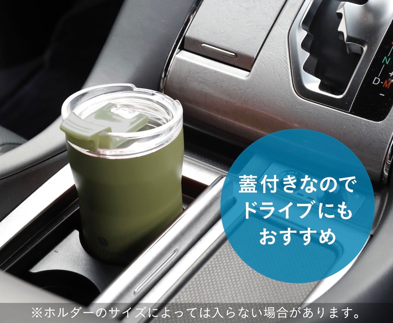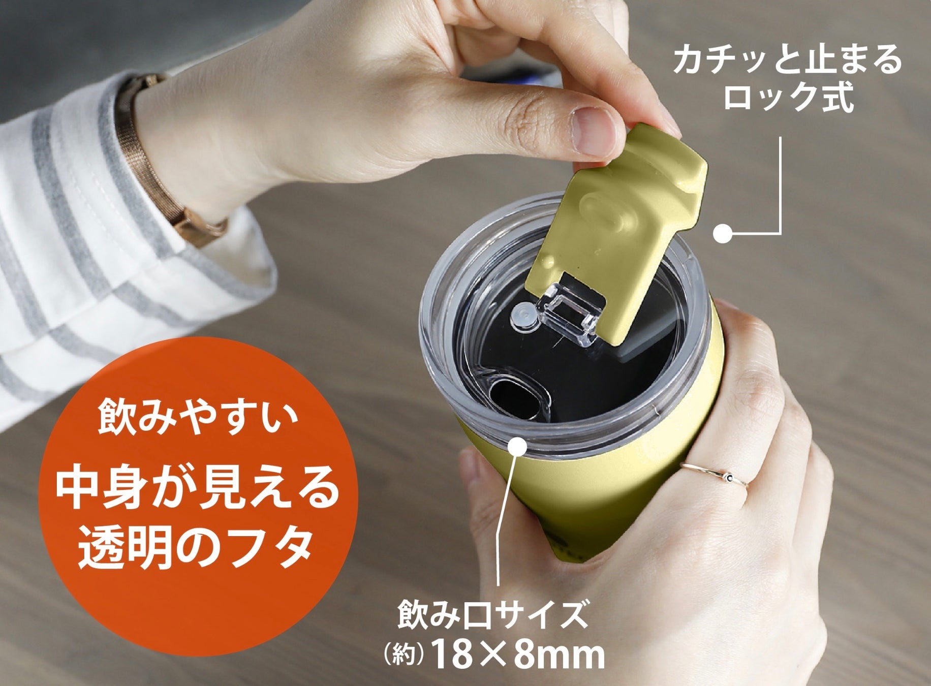 万が一倒れても漏れにくい蓋付きタンブラー。抜群の保冷&保温効果で季節を問わず使えます!