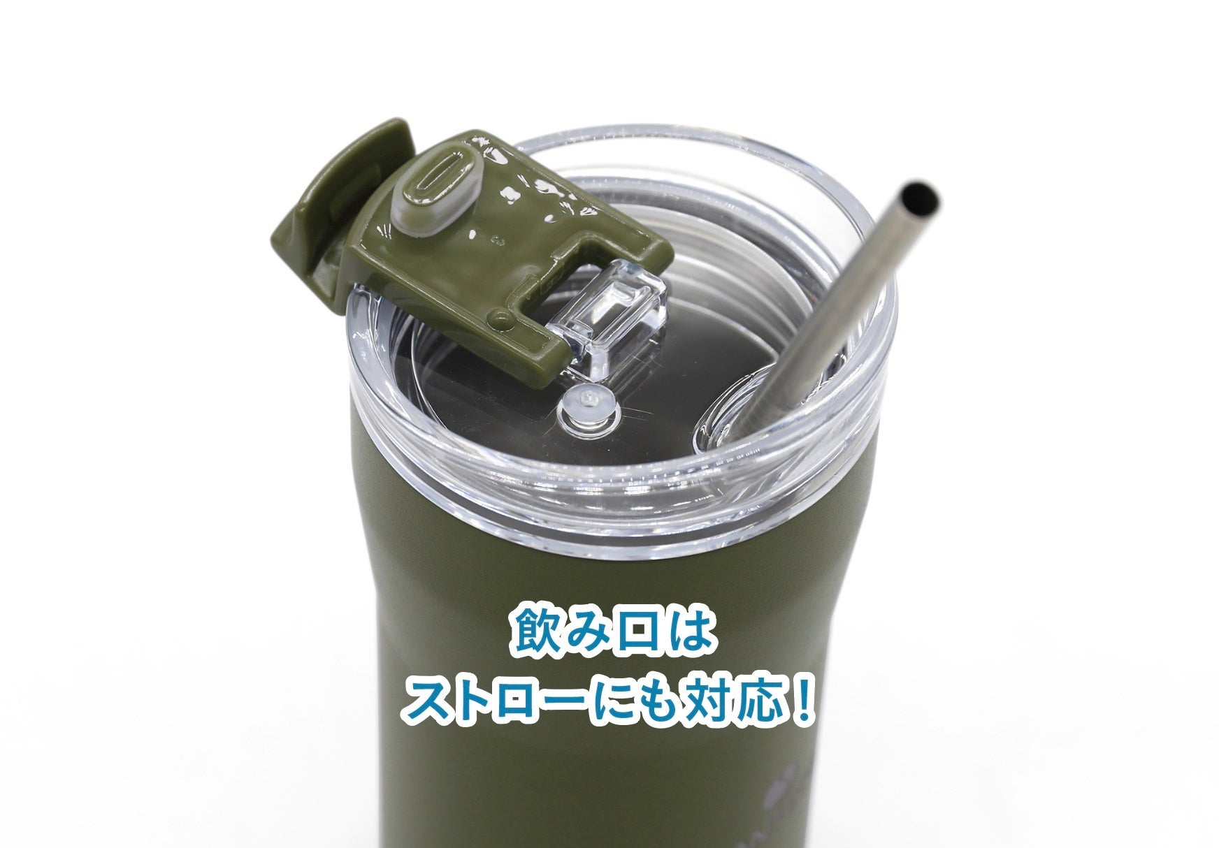 飲み口にはストローを挿せるので素早く水分補給ができ、口紅やリップくずれを避けたい女性にとっても