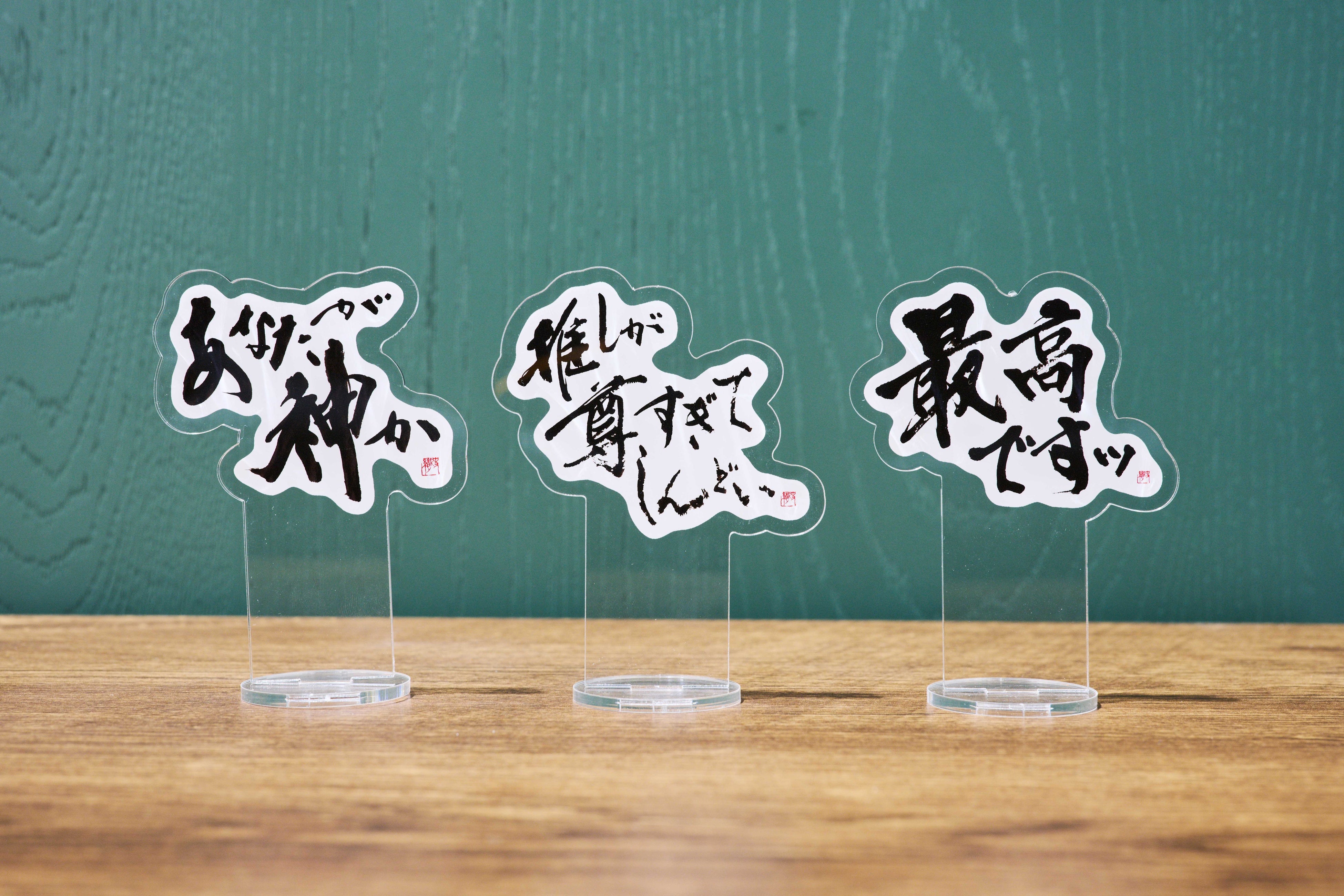 推しのアクスタを入れて撮影するもよし、推し活って何?という方は眺めてニヤニヤするのもよし。アクスタをお持ちでない方のために、佐賀の名産、佐賀県出身の書家「江島史織」による推し文字や、佐賀推しクリエイター「ヨッピー」「アフロマンス」など、全76個のアクスタをご用意。