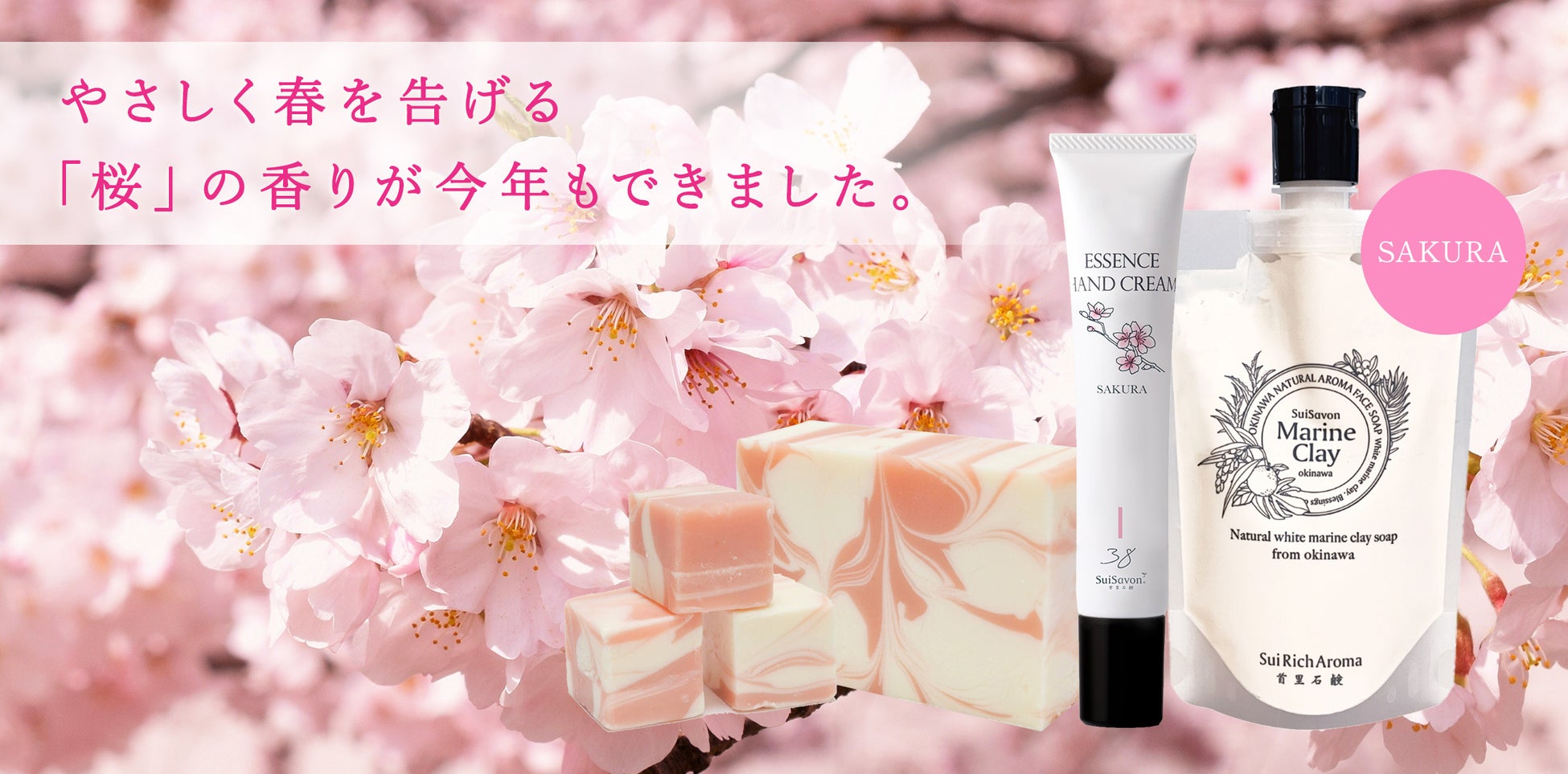 沖縄発スキンケアブランドSuiSavon-首里石鹸-、大人気のマリンクレイ洗顔石鹸やエッセンスハンドクリーム等全4種で季節限定の香り「桜の香り」を2025年4月1日(火)より販売!