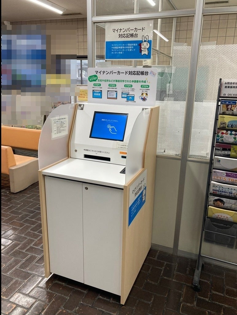 門真市は、マイナンバーカード又は在留カードを機器で読み取ることで、氏名や住所などの情報が事前印字された申請書を作成することができる「申請書作成支援端末(マイナンバーカード対応記帳台)」を設置しました。