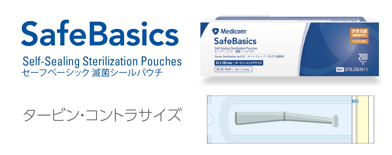 A.R.メディコム・インク・アジア・リミテッド(本社:兵庫県神戸市、代表:藤原慎一、以下、メディコムジャパン)は、シーラー不要のテープシール付滅菌パウチ「セーフベーシック 滅菌シールパウチ」に、新サイズ『タービン・コントラサイズ』を発売いたします。