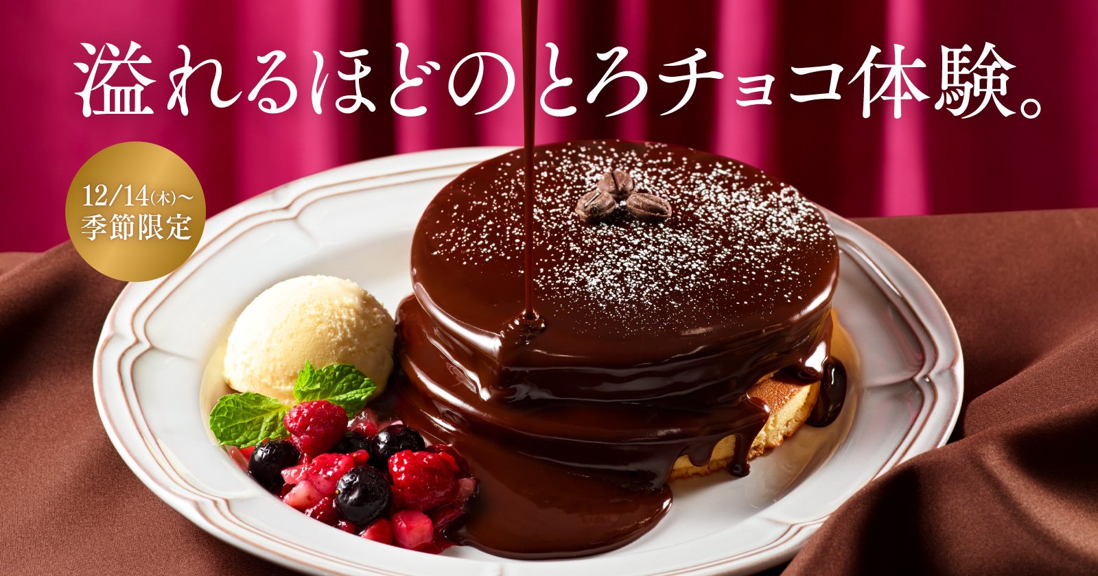 『珈琲館』と『珈琲館 蔵』で、 とろける濃厚なリッチチョコレートがテーマの冬限定ホットケーキが12月14日より新登場!
