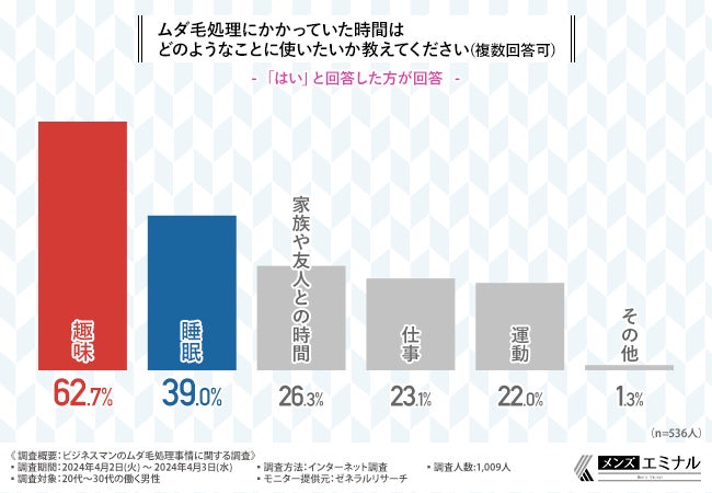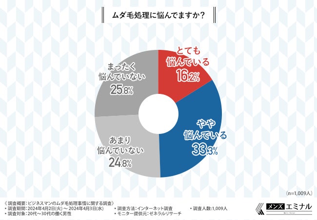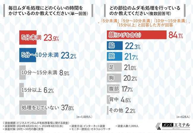 そこで今回、メンズ専用脱毛クリニック「メンズエミナル」(https://mens-eminal.jp/lp/?refmedia=31073)は、20代~30代の働く男性を対象に「ビジネスマンのムダ毛処理事情」に関する調査を実施しました。