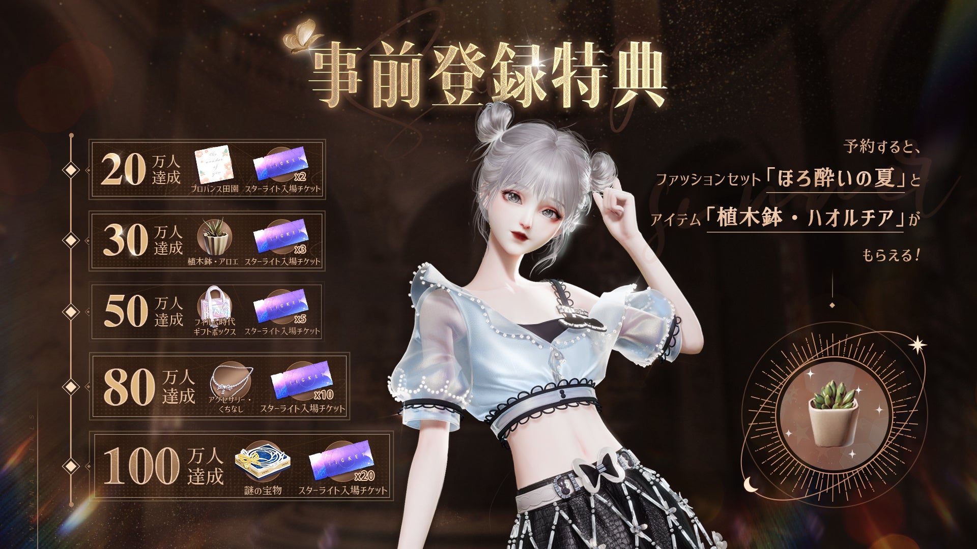 | 100万人達成 | 謎の宝物+スターライト入場チケット*20 |