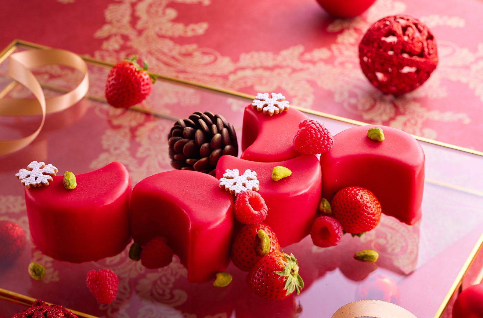 1個ずつチョコレートを重ねた別添えの松ぼっくりや苺をお好みでアレンジし、世界でひとつだけのデコレーションをお楽しみください。〈数量限定・ご予約限定〉