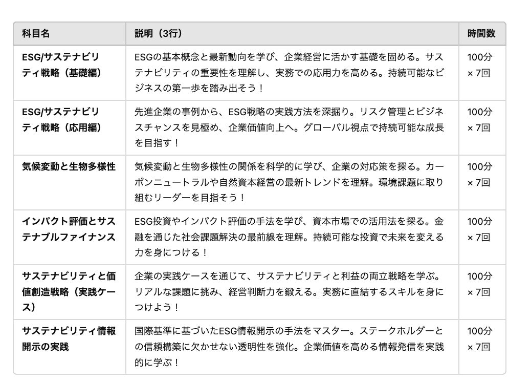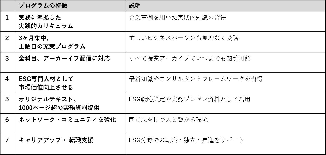 大学院が認定するESG/サステナビリティ実践者認定プログラム】のため、 転職・昇進に圧倒的に大変有利になります!、また、履修登録プログラムになります。この機会に是非ご参加ください。