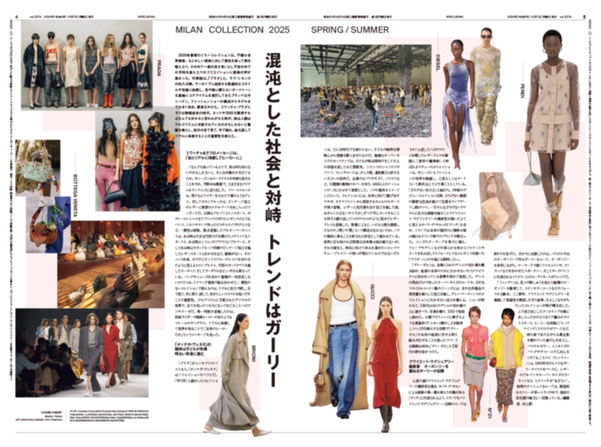 「WWDJAPAN」10月7日号は、2025年春夏ミラノ・ファッション・ウイークを総括します。今季はデザイナーらが考える「生き方」が表出したシーズンでした。個々が抱える生きづらさを出発点に、批判の目を持って疑問を呈したり、ポジティブに現実を受け止め軽やかに生きるための術を提案したりといった表現が目立ちました。