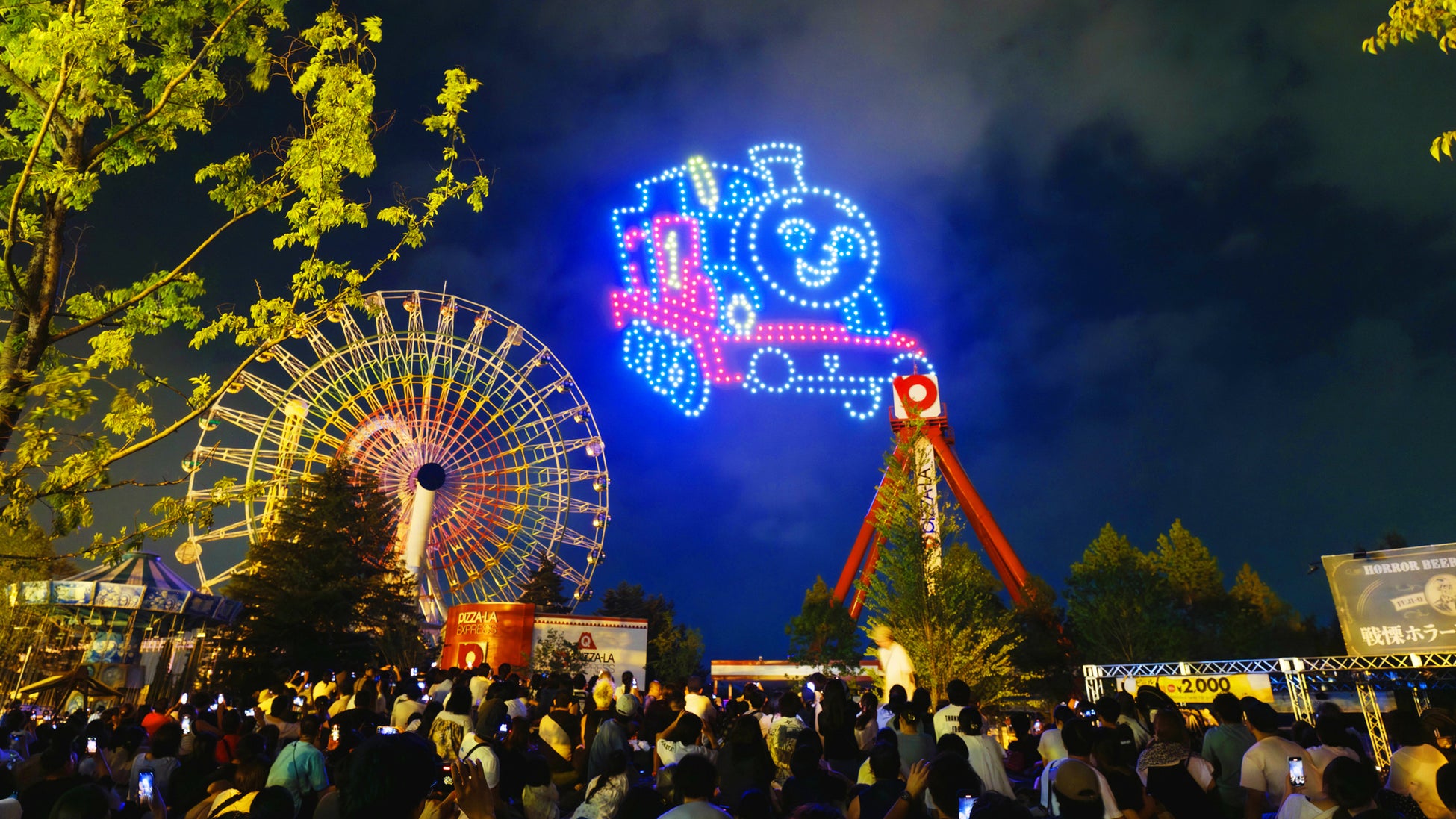 開業60周年を記念した500機のドローンショーでは、60周年を記念したロゴや、人気ジェットコースター「FUJIYAMA」、さらに 「きかんしゃトーマス」に登場する仲間たちなどを、最新技術のドローンで夜空に描き、富士急ハイランド60年の歴史を物語るとともに、新時代の幕開けを予感させる圧巻のショーとなりました。