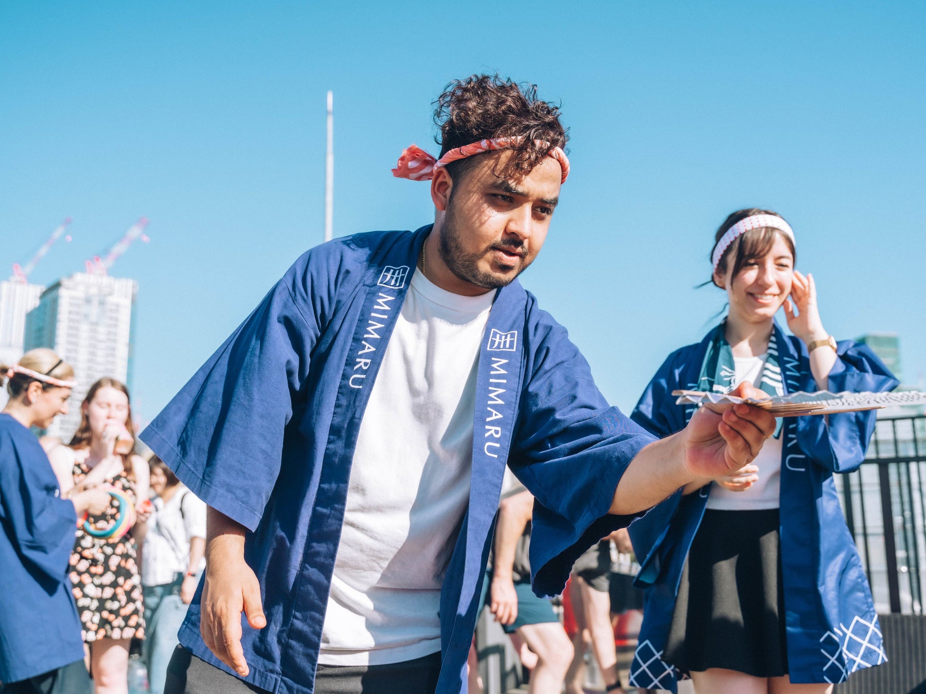 毎年約2万人が赤坂に集まり、神輿や山車の巡行、盆踊りや露店の出店される氷川神社のお祭りが、本年は9月15日から17日の3日間、斎行されました。「MIMARU東京 赤坂」に宿泊されるゲストに、地元の方々と一緒に祭りで山車を曳く機会を呼びかけたところ、多くの応募をいただきました。先着20名さまに17日の「神幸祭」で、神社隊列、江戸型山車、町会神輿15基からなる山車巡行に参加いただきました。日本伝統の羽織である法被(MIMARU法被)を着て、満面の笑顔で山車を曳き、街を練り歩きました。ドイツ、オーストラリア、台湾などから来日中に参加された海外ゲストからは「日本に来たのは2回目だが、こんな地域のイベントに参加したのは初めてで、良い経験になった」「みんなで同じ法被を着て、ひとつのことを一緒にできたことが嬉しかった」「子どもが本当に喜んで大はしゃぎだった」「神社の行事で平和や健康を祈る感じがあった」などの感想をいただきました。また、曳き回しの後にはホテル屋上で輪投げやヨーヨー釣り、投扇興などを紹介しながらゲスト同士の交流を図りました。