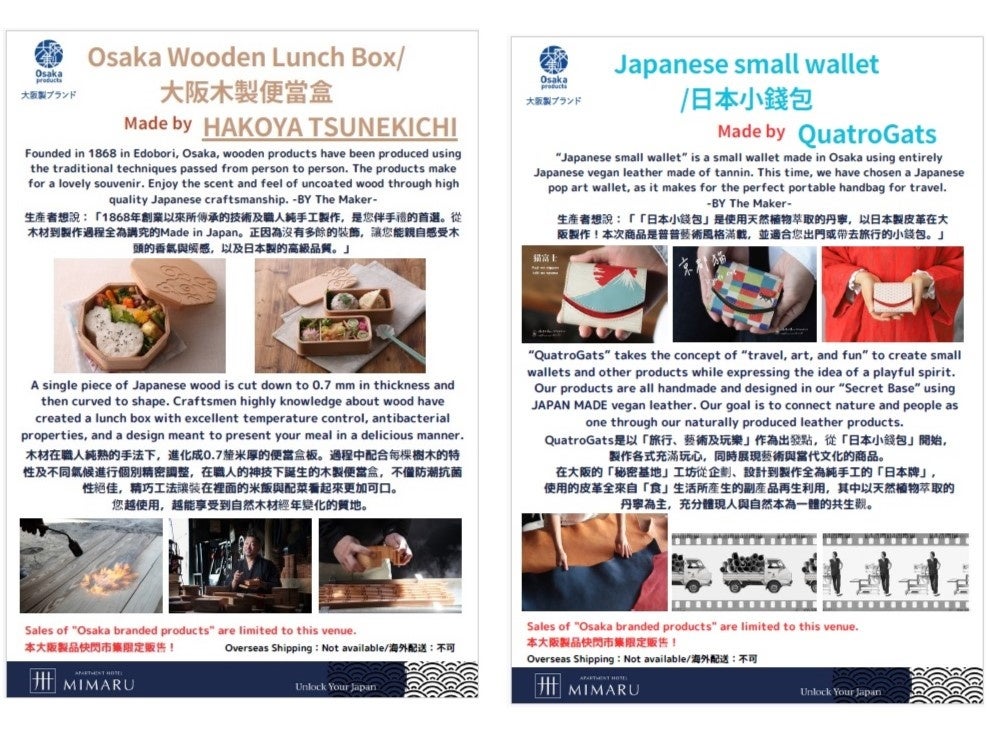 「大阪府知事お墨付き」の大阪製ブランドを販売するPOP UP STORE「Meet with Osaka Products」を9月11日から17日まで、「MIMARU大阪 心斎橋NORTH」にて開催しました。大阪・関西万博の開催を控えた大阪のものづくりを海外ゲストに広く知っていただくため、公益財団法人大阪産業局とコラボレーションし、大阪製ブランド認定製品を直接「見て・触れてもらう」イベントです。MIMARUスタッフが実用性やお土産としての持ち帰りやすさなどを考えてセレクトした11点を展示。『日本に来なければ出会えなかった価値』を体感していただきました。