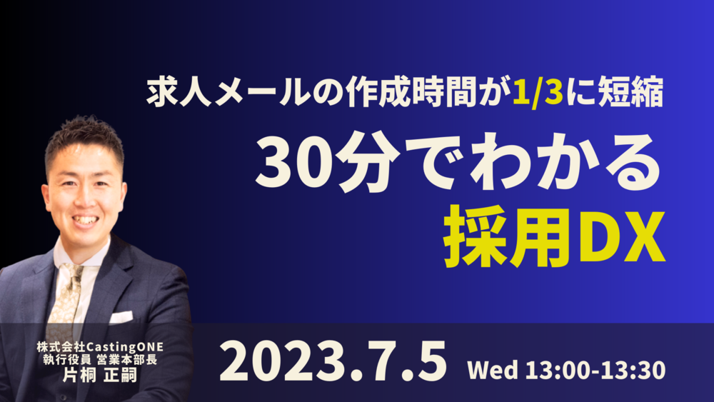【7月5日(水)開催】30分でわかる派遣会社向け「採用DX」~求人メールの作成時間が1/3に短縮~