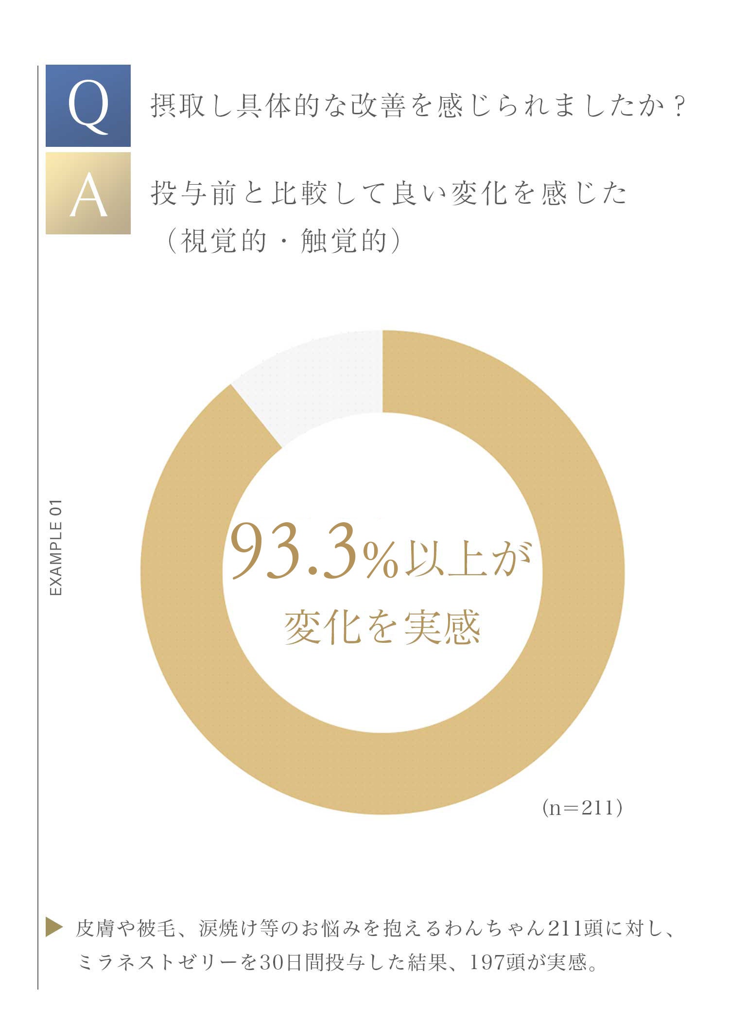 ”奇跡を起こす”100%アナツバメの巣をゼリーにした「ミラネストゼリー FOR DOG」をお試しいただき、0日目、10日目、20日目、30日目のお写真とレポートにご協力いただける方に、1ヶ月サイズ(30本入り)を抽選で50名様にお送りいたします。