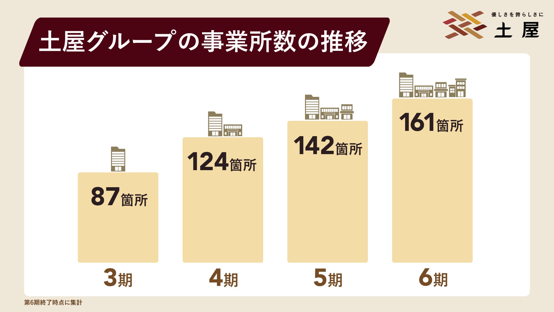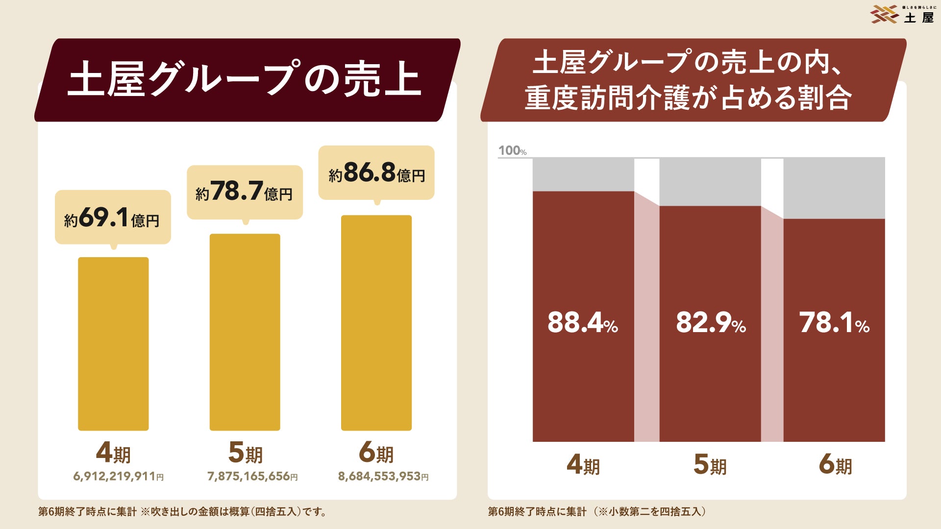 介護のトータルケアカンパニーとして全国47都道府県で障害をお持ちの方や高齢者に介護サービスを提供する株式会社土屋(本社:岡山県井原市、代表取締役:高浜敏之)は、2025年10月末で第6期が終了し、11月1日より第7期がスタートしました。