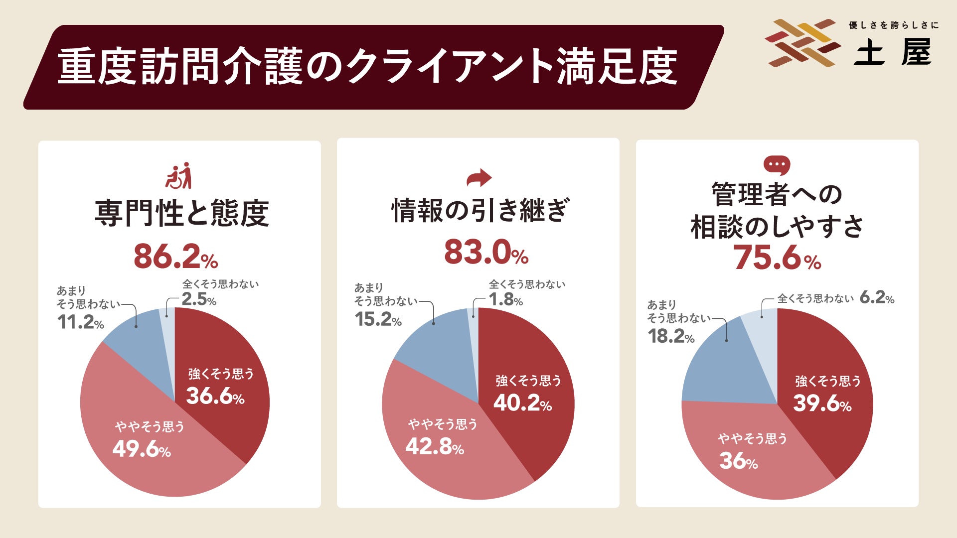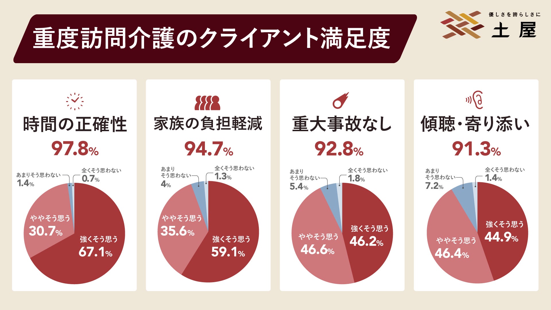 土屋では、今回のアンケート調査結果を真摯に受け止め、みなさまの生活に欠かせないインフラとしての強い自覚を持ち、さらなるケアの質の向上に努めてまいります。