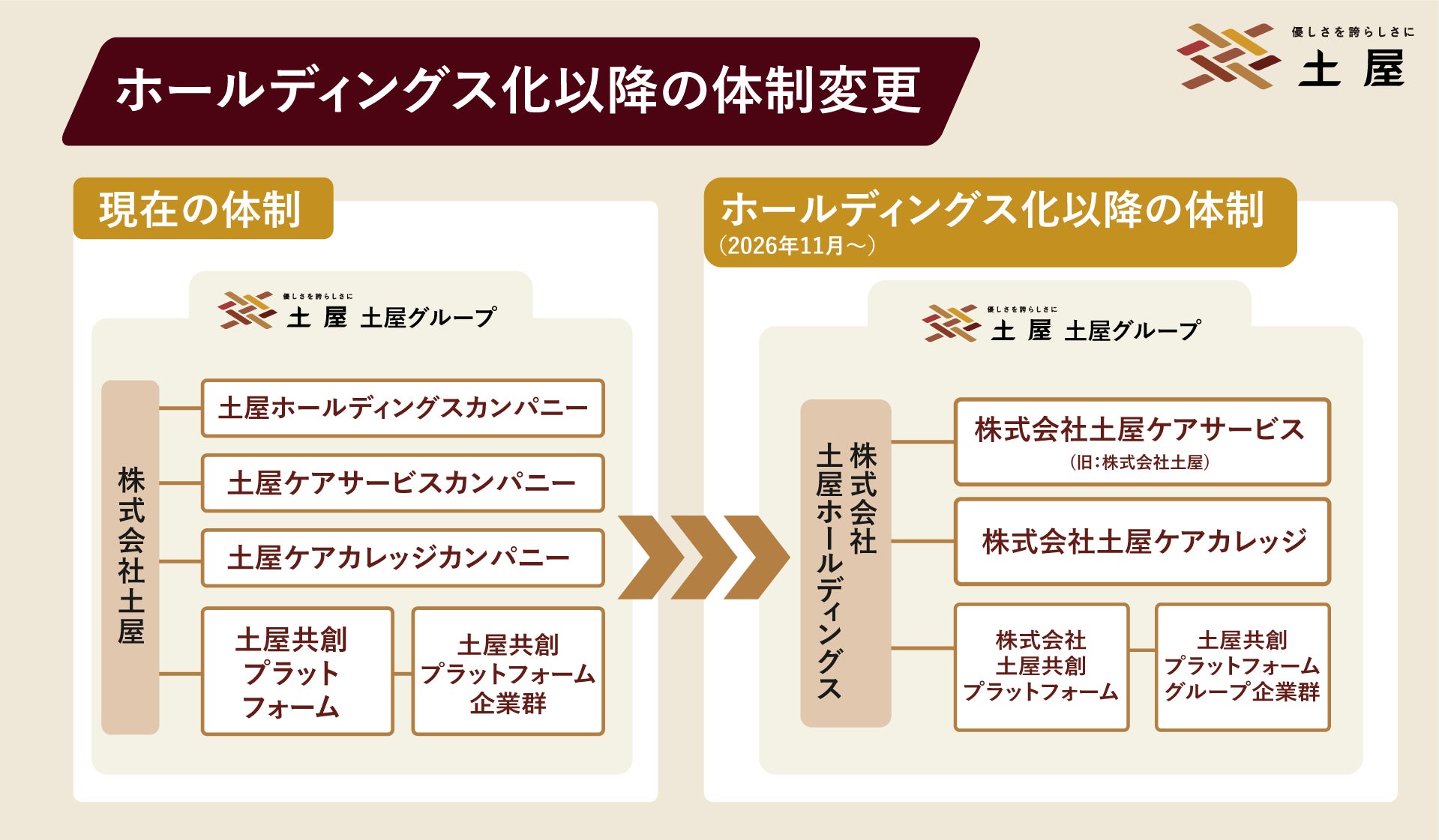 土屋グループは2026年11月にホールディングス化を行います。詳細については以下の図をご覧ください。