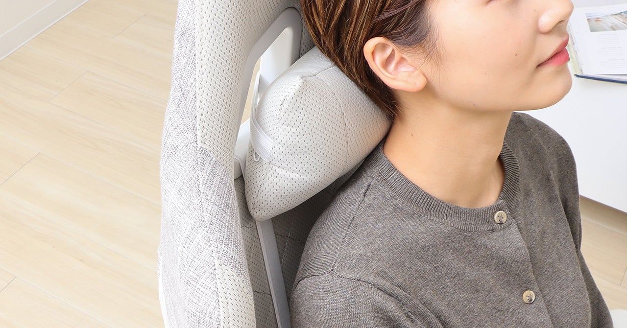 首のカーブに合わせられるヘッドクッションはメッシュ素材で通気性に優れています。