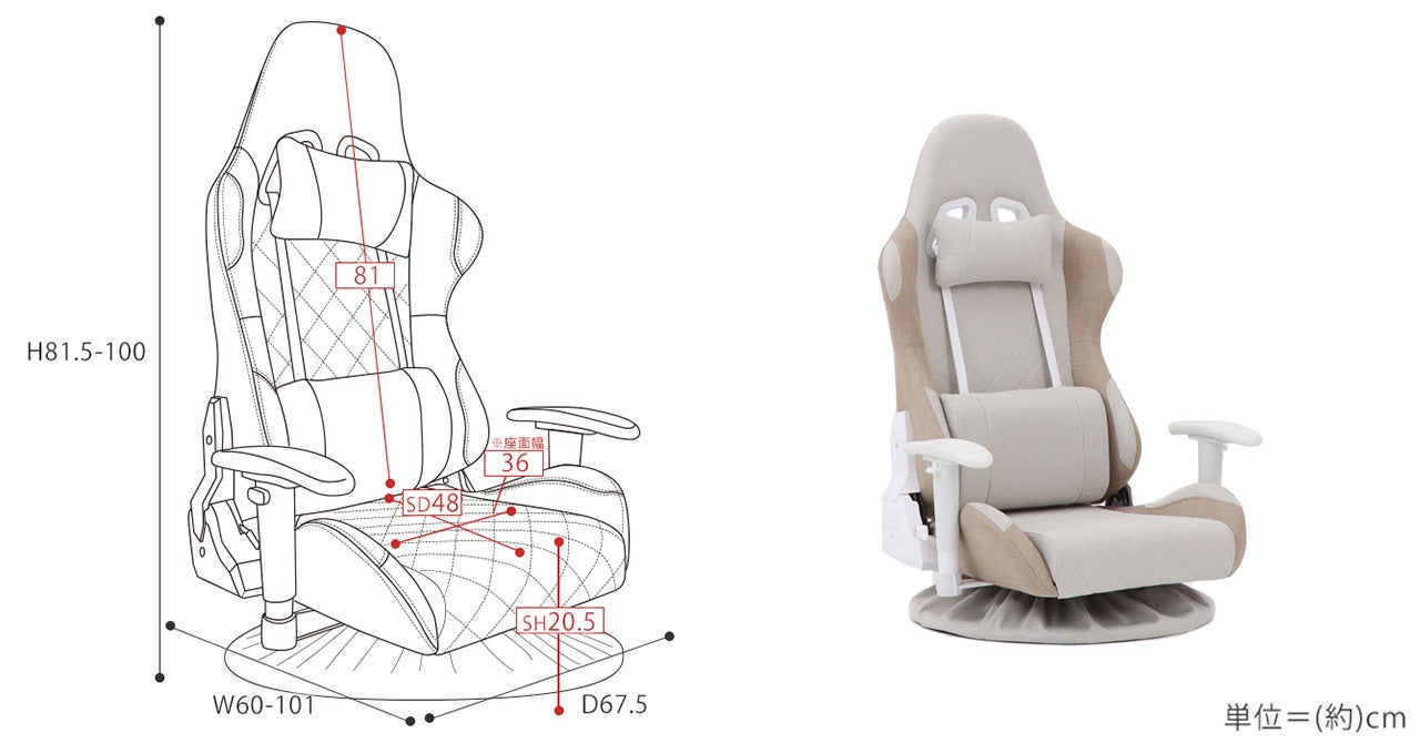 - サ イ ズ :(約)横67.5×奥行60-101×高さ81.5-100cm