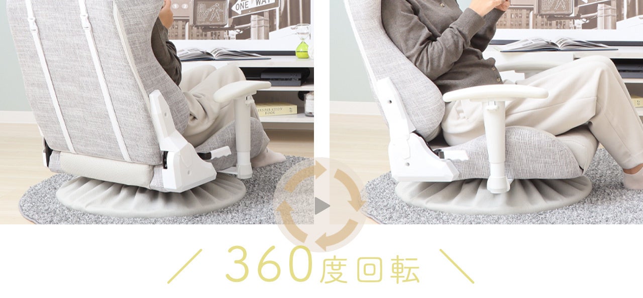スムーズに360度回転し、椅子を移動することなく楽に立ち座りできます。