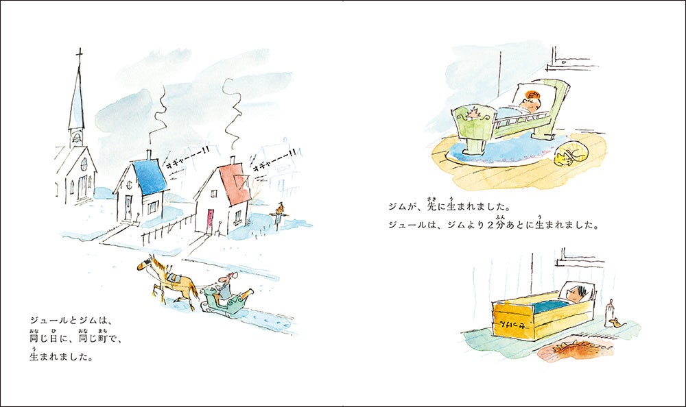 主人公のジュールとジムは、同じ日に同じ村で生まれた幼なじみ。