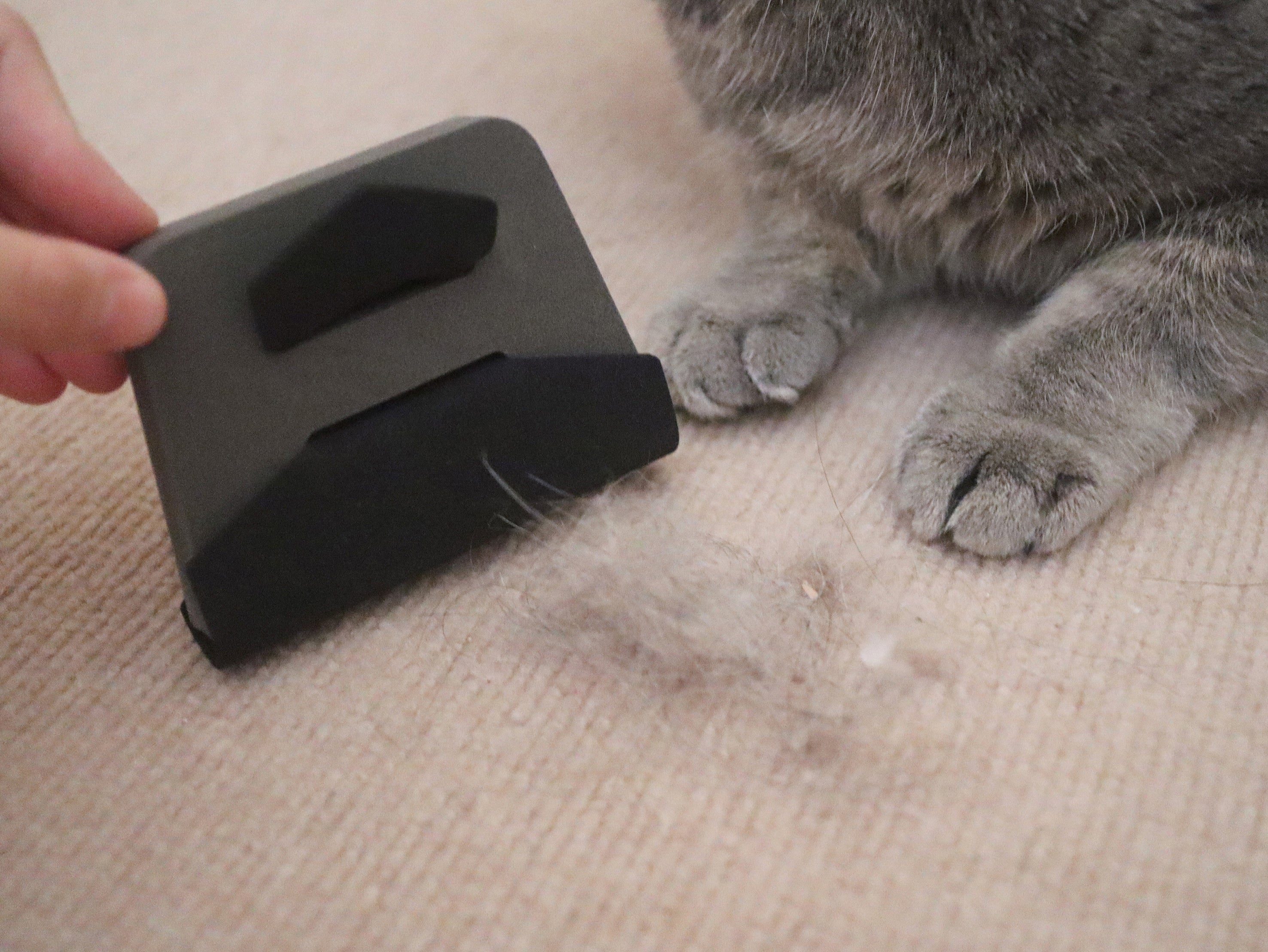 ・軽い力でこするだけで、タイルマット・カーペットや布ソファーについたペットの毛を集めて取ることができる