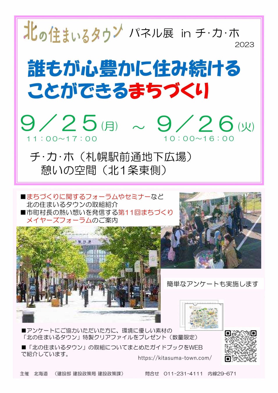 【9月25日(月)、26日(火)】「北の住まいるタウン」パネル展 in チ・カ・ホ2023を開催します!