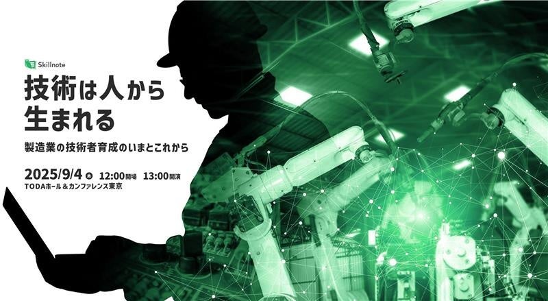 製造業のスキルマネジメントを牽引する株式会社Skillnote(本社 東京都千代田区、代表取締役 山川隆史、以下 Skillnote)は、「スキルマネジメントカンファレンス2025 -技術は人から生まれる 製造業の技術者育成のいまとこれから-」の開催を決定しました。本カンファレンスは、2025年9月4日(木)にTODAホール&カンファレンス東京(東京都中央区)で、参加無料の事前登録制にて実施します。製造業における最先端技術を牽引するキーパーソンやグローバルにものづくりを展開する企業のリーダーなどが集い、技術者の育成やキャリア、テクノロジー活用を議論します。