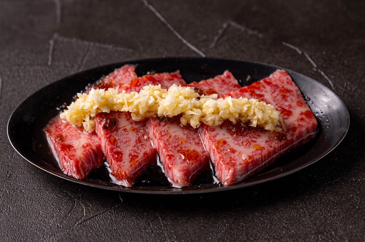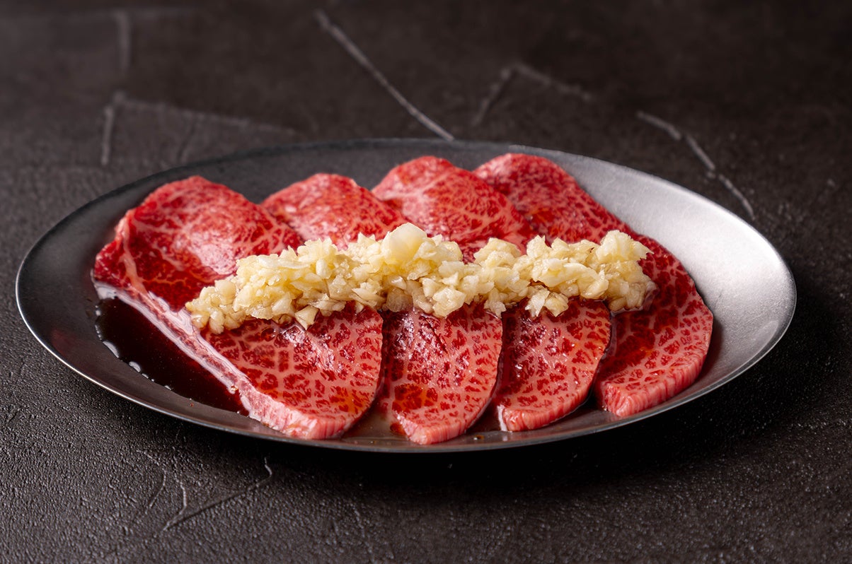 口の中でジュワっとした脂が溢れ出す特上カルビには、香ばしい香りのにんにくとの相性抜群!お肉の表面を焦がさない程度に焼き、にんにくのカリカリにしてお召し上がりいただくのがお勧めです。