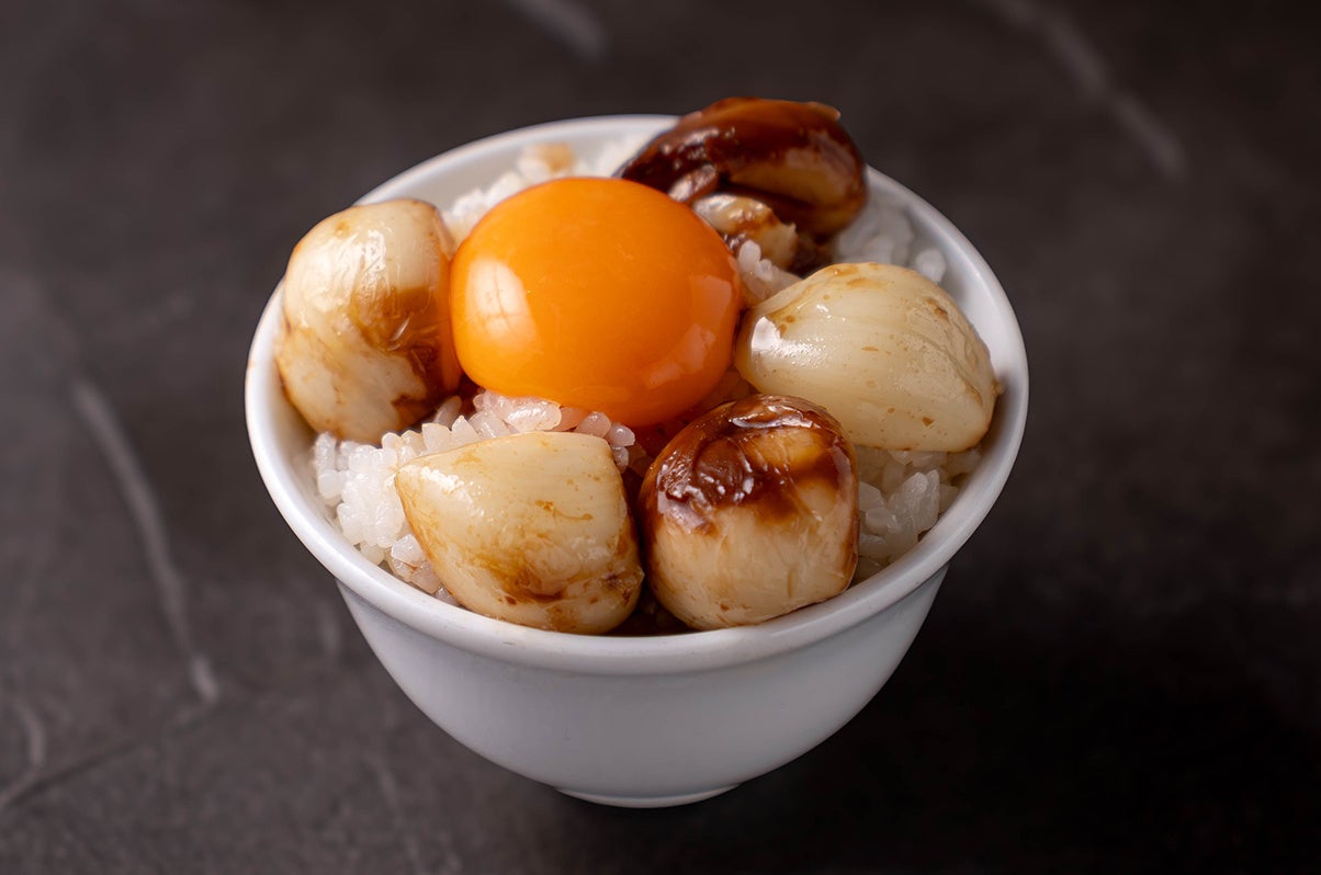 焼肉だけでなく、ご飯と一緒に美味しいにんにくを堪能したいという方にお勧めの、「よしだ家にんにくTKG」。柔らくて甘い大粒のにんにくは、ご飯とも合います。焼肉と一緒にどうぞ。