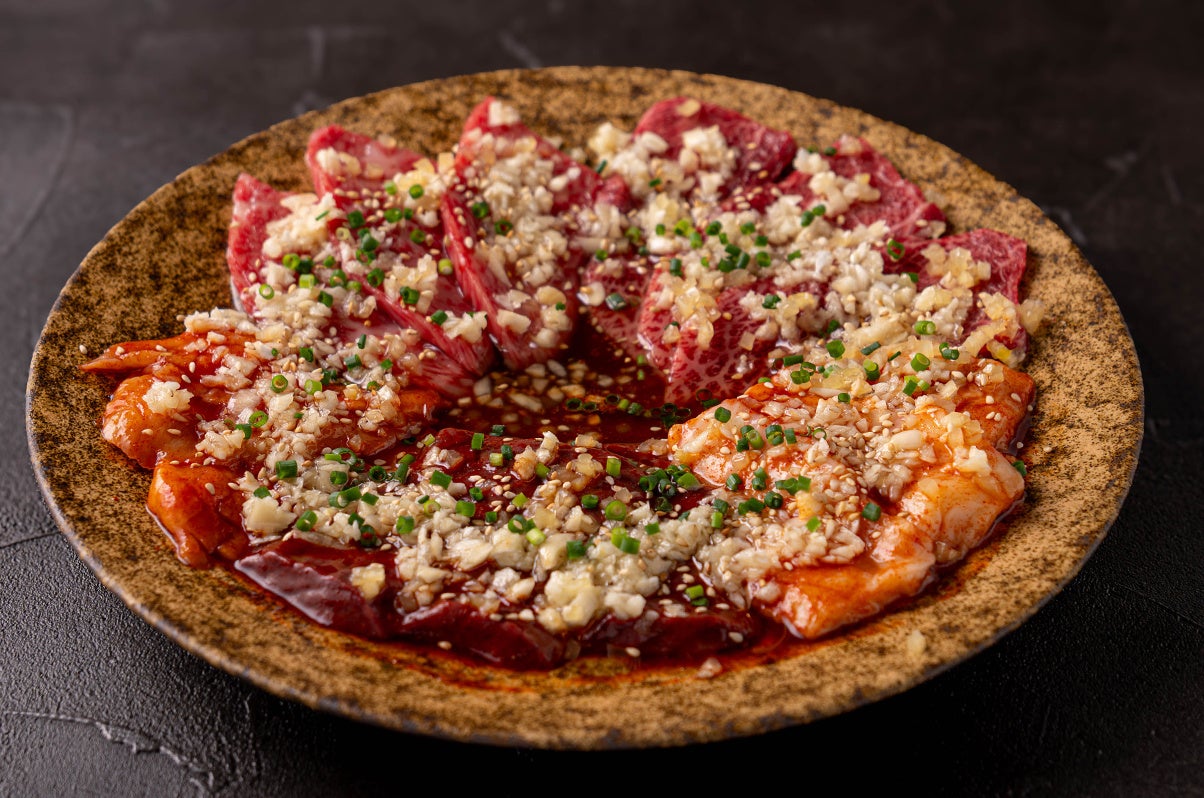 A4・A5ランクの高品質な黒毛和牛の焼肉をリーズナブルに楽しめる『マルウシミート』では、毎月期間限定メニューを提供。2024年9月は、昨年開催し大反響をいただいた「スタミナにんにくタレフェア」をさらに進化させようと青森県産のにんにくを探したところ、最高級のにんにくをこだわりの製法で育てている『にんにくのよしだ家』を発見。生産者・吉田氏の想いと品質の高さに総料理長が惚れ込み、初コラボが実現しました。