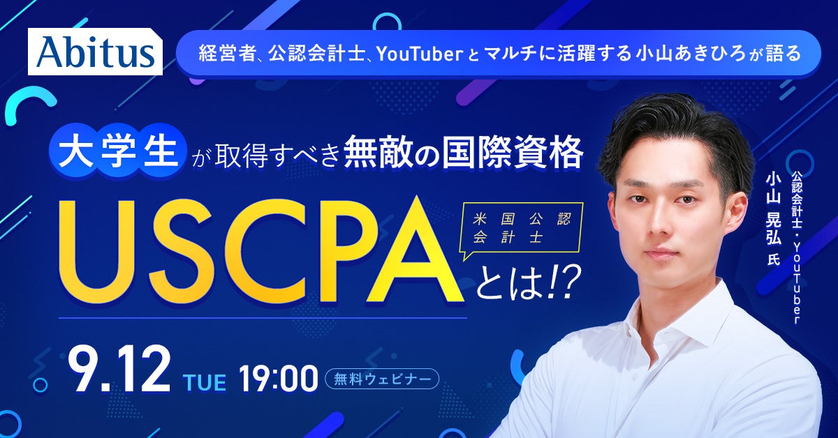 経営者、公認会計士、YouTuberとマルチに活躍する小山あきひろが語る、大学生が取得すべき無敵の国際資格「USCPA」とは!?|9月12日(火)開催、無料ウェビナー