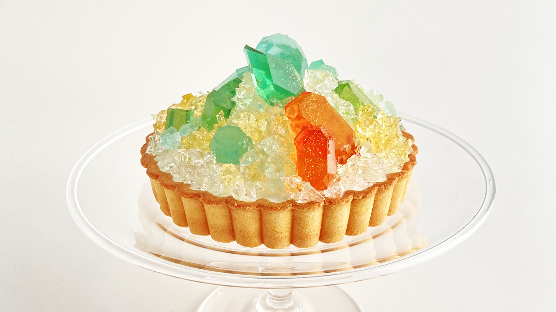 夏の陽ざしにきらめく、8月の誕生石“ペリドット”をイメージしたアイスケーキが登場。美しいグリーンのこうぶつヲカシで、ペリドットの輝きを表現しました。オレンジ色の宝石は、もう一つの8月の誕生石“サードニクス”をイメージしています。ひとつひとつ職人が切り出す琥珀糖の切りたての輝きをお楽しみいただける特別なタルトは、大切な人への贈り物にも、自分へのご褒美にもぴったりな一品です。誕生石のタルトは制作の手間が非常にかかる作品のため、20個と少量しかお作りすることができず、ありがたいことに、毎月販売開始まもなくの完売が続いています。嬉しくもご期待に添えず申し訳ない気持ちですが、誕生石のタルトをかけがえのないものとしてお楽しみいただければと思います。